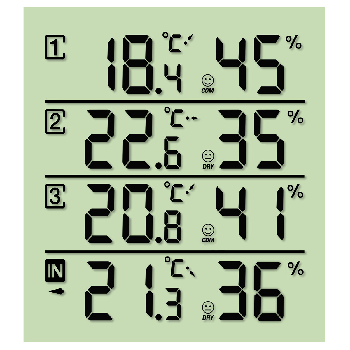 Для цього на екрані метеостанції відображається температура, вологість, піктограма комфорту. Крім того, є можливість встановити мінімуми та максимуми за температурою та вологістю. Якщо ці параметри вийдуть за встановлені межі, метеостанція про це сповістить.