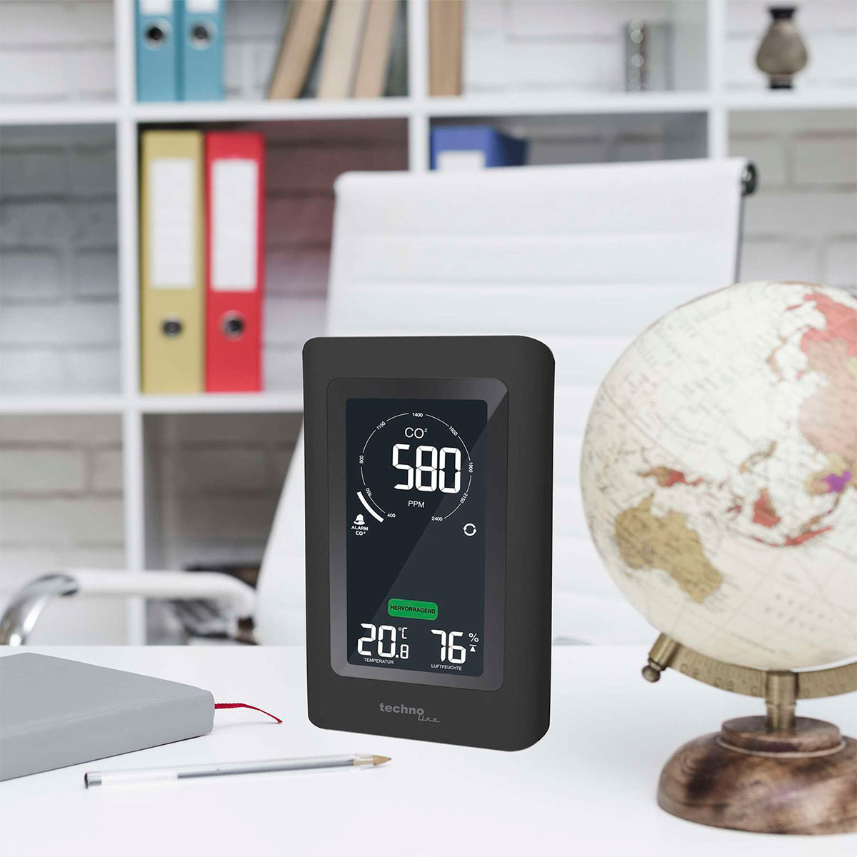 Для якісного відстеження мікроклімату у приміщенні ми рекомендуємо метеостанцію Technoline WL1030 Black з інфрачервоним аналізатором концентрації CO2. Основа для отримання точних значень – потужний газовий датчик NDIR (недиспергуючий інфрачервоний аналізатор) з вимірюванням CO2 і додатковою функцією автоматичного калібрування.