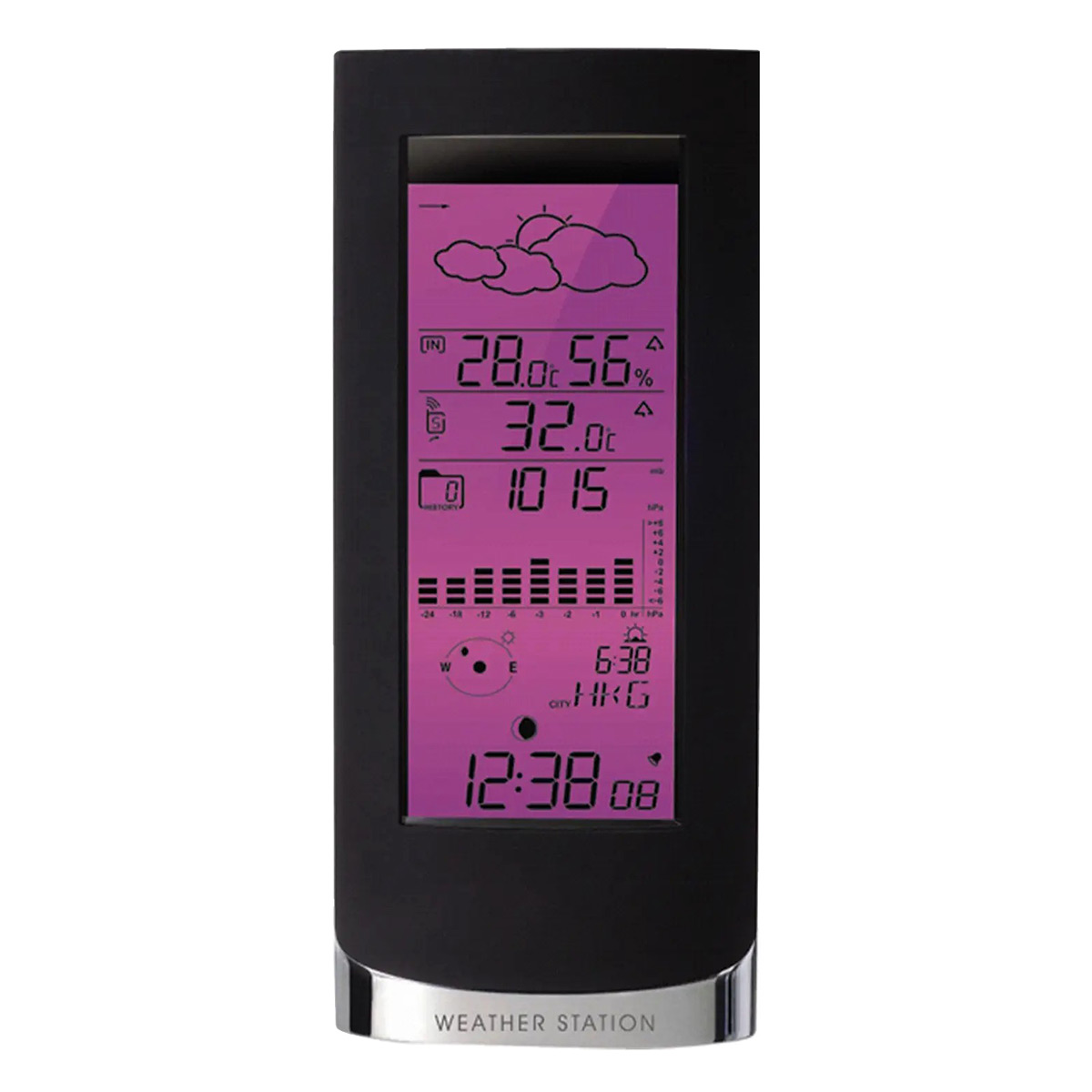Звичайно, дана метеостанція має стандартні функції вимірювання температури та вологості, формування прогнозу погоди. Крім того, вона одна з небагатьох дозволяє встановити висоту положення над рівнем моря, а отже отримувати точні дані атмосферного тиску саме на тій висоті, де ви знаходитесь, дає змогу передивлятись графік зміни тиску та пікові значення тиску протягом останніх 24 годин. Також метеостанція оснащена функціями годинника з будильником та календаря, додатковим бонусом стане змога відображати не лише поточну інформацію про фазу Місяця, схід/захід Сонця і Місяця, але й дані про схід/захід Сонця на будь-які дати в період з 2000 по 2099 рік.