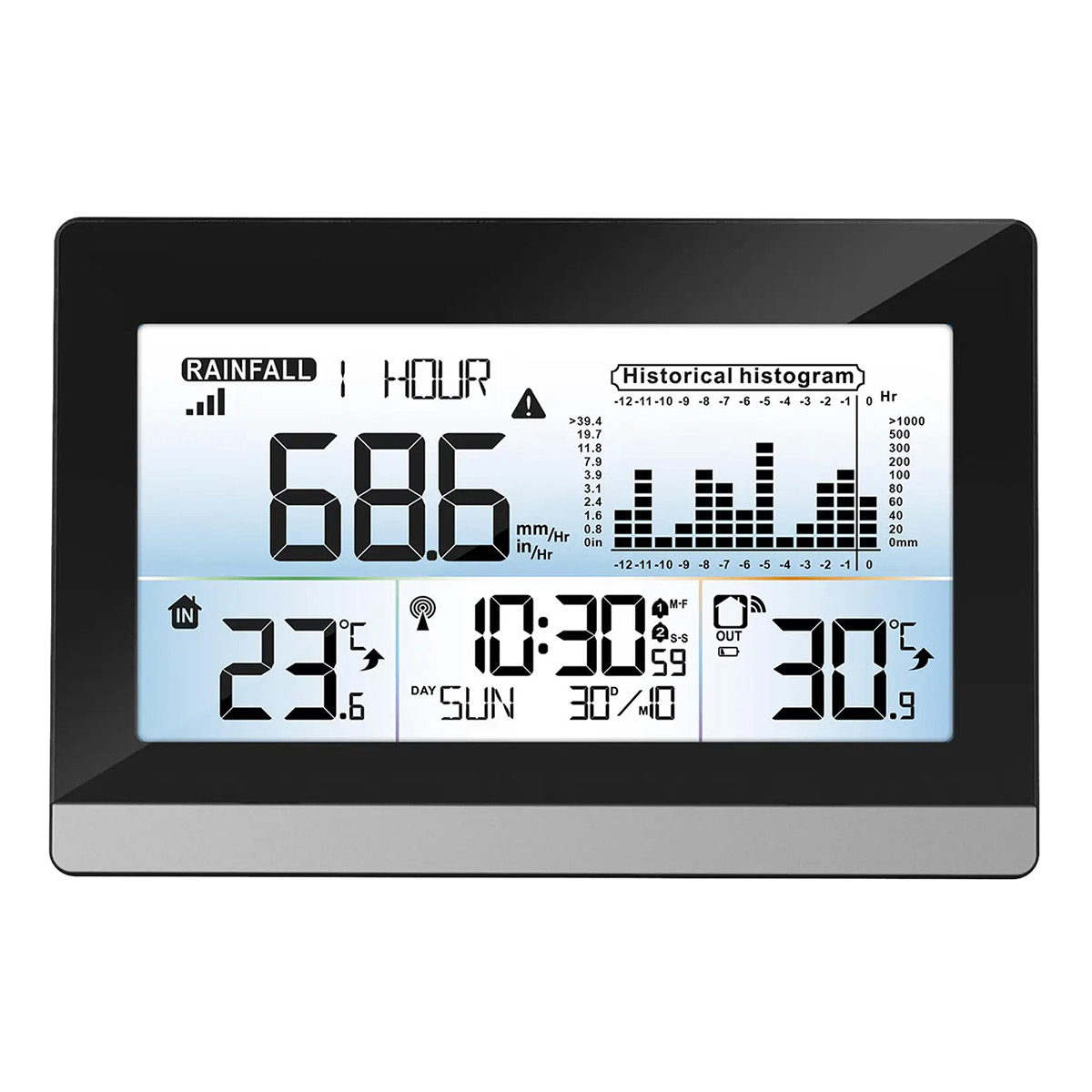 Метеостанція не тільки відображає внутрішню/зовнішню температуру та кількість опадів за різні періоди часу, але й попереджує звуковим сигналом у випадках відсутності чи наявності опадів в достатній кількості, або виходу температури за встановлені межі. Це дозволяє своєчасно прийняти рішення про необхідність поливу рослин, внесення добрив чи здійснення інших необхідних дій.