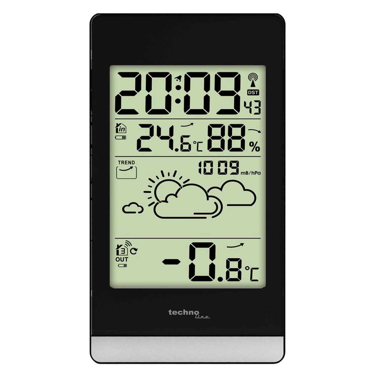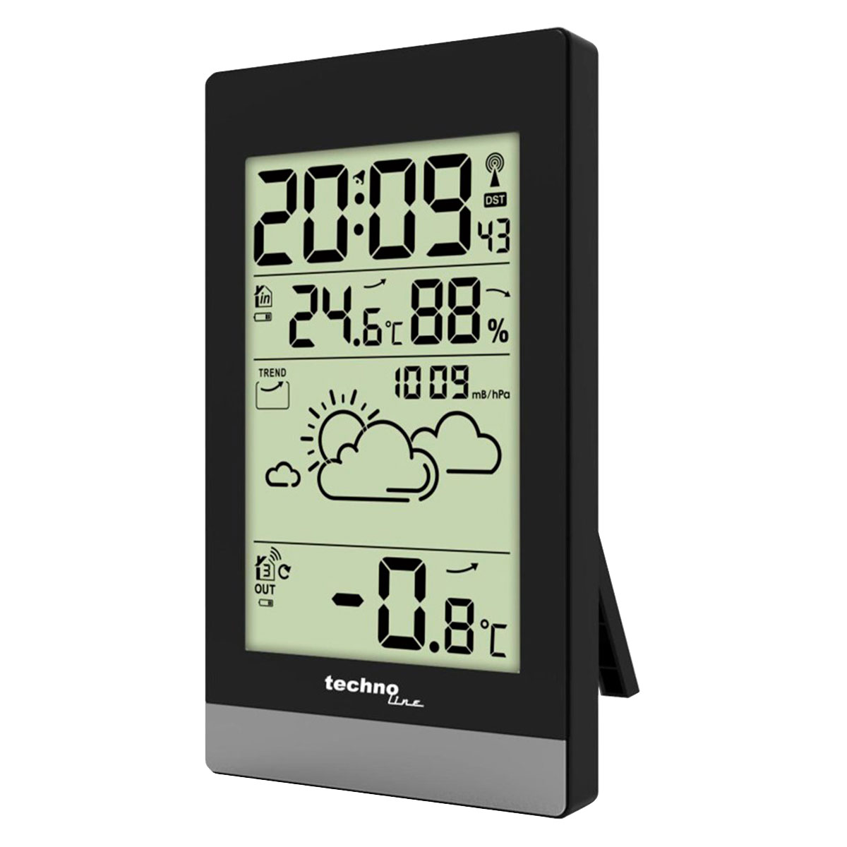 Technoline WS9132 Black – це домашня метеостанція у компактному корпусі з монохромним дисплеєм, на якому відображаються усі актуальні дані як у приміщенні, так і ззовні.