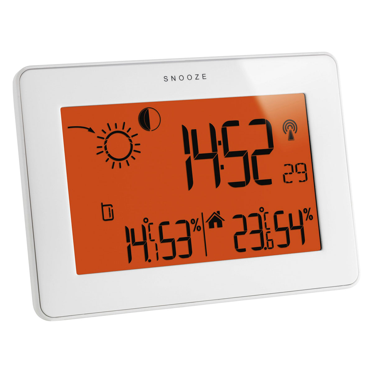 TFA Slim Touch White – функціональна метеостанція у лаконічному корпусі з символьним прогнозом погоди, яка може вимірювати внутрішню/зовнішню температуру, внутрішню/зовнішню вологість та має можливість використання 3-х зовнішніх датчиків одночасно, що дозволить контролювати температуру або вологість у чотирьох приміщеннях.