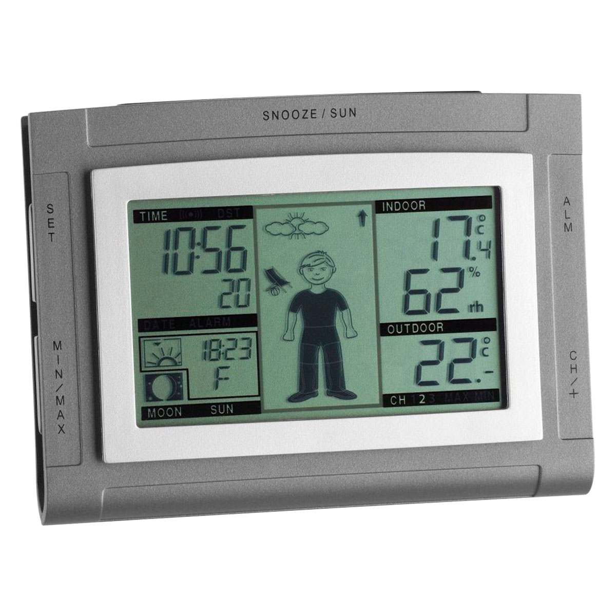 Вдягати футболку чи пальто, брати парасольку чи ні? TFA Weather Boy XS завжди знає відповідь на ці запитання! 15 зображень хлопчика завжди показують правильний одяг для поточної температури зовнішнього повітря. Необхідне значення визначається через власний бездротовий передавач у вашій місцевості. Також орієнтуватися на прогноз погоди допомагають символи, які також відображаються на екрані метеостанції.