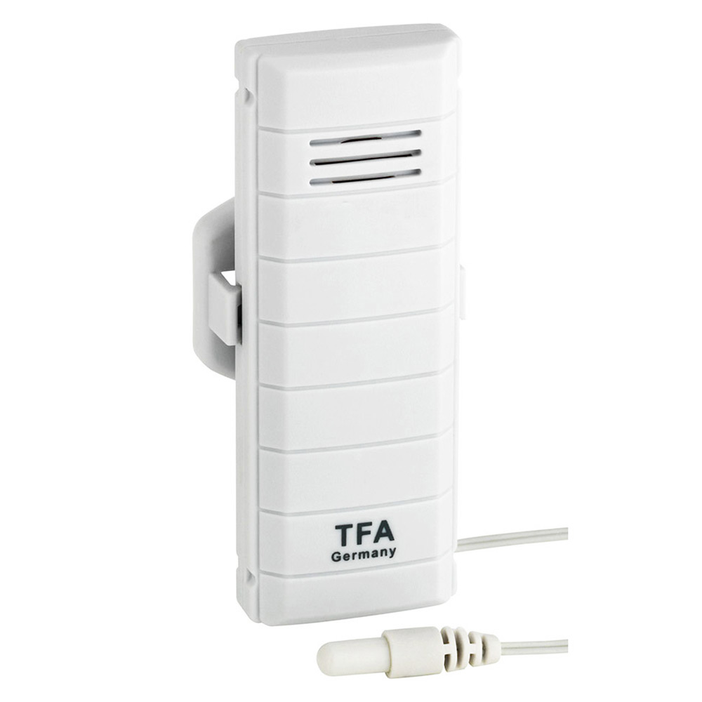 Датчик вимірює температуру за допомогою водонепроникного дротового сенсора (довжина 1 м) та передає дані до мобільного шлюзу, який в свою чергу надсилає їх на хмарний сервер. Отриману інформацію можна переглянути на екрані власного смартфона в будь-який час та у будь-якому місці з доступом до інтернету, попередньо встановивши безкоштовний мобільний додаток TFA WeatherHub. Цей датчик добре підходить для стеження за температурою у холодильнику, морозильній камері або за температурою води у басейні, акваріумі, ставку.