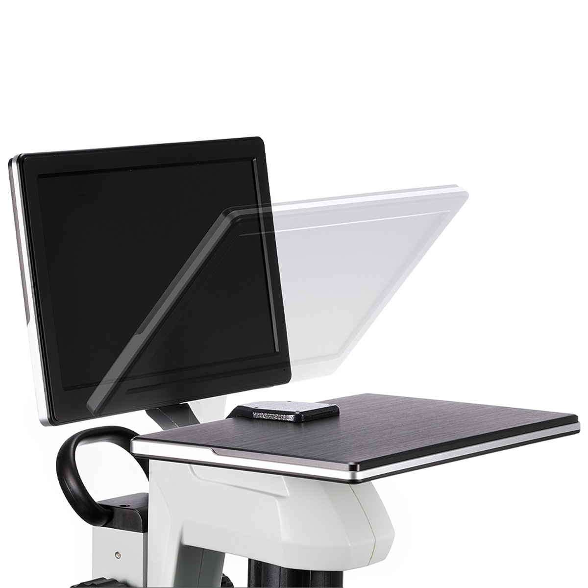 Отримане зображення виводиться на 9-дюймовий (22.5 см) кольоровий рідкокристалічний екран. Завдяки великому розміру екрана зображення зручно переглядати безпосередньо на мікроскопі, без підключення до зовнішнього монітора або комп'ютера. Це спрощує робочий процес і підвищує мобільність приладу. Рухома конструкція екрана дозволяє регулювати його кут нахилу для комфортного перегляду.
