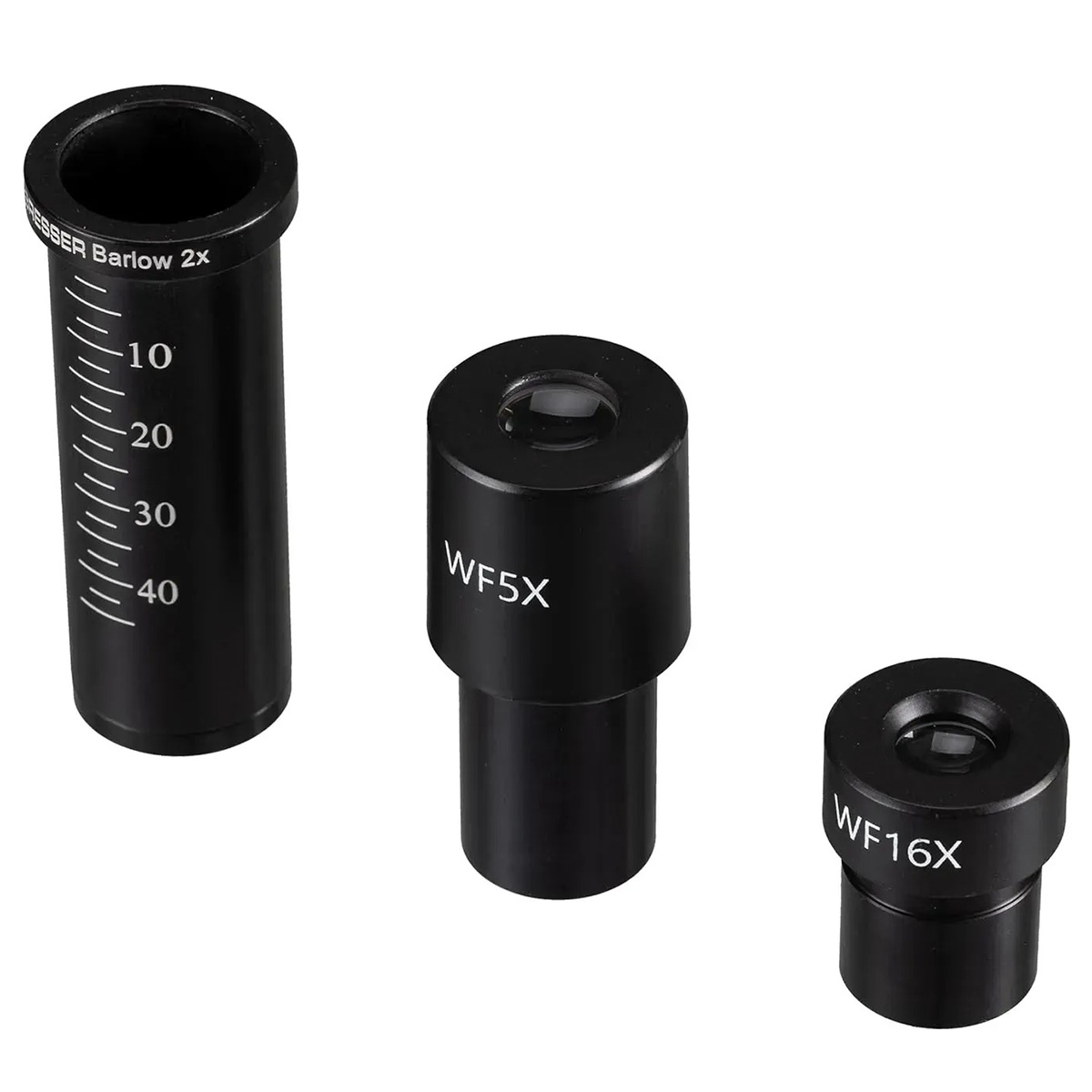 Монокулярна насадка має комфортний для тривалих спостережень кут нахилу 45º. А завдяки обертанню на 360º з мікроскопом може працювати група користувачів, що зручно, зокрема, під час шкільних уроків. Револьверна головка оснащена трьома ахроматичними об'єктивами 4x, 10x і 40x. В комплект постачання також входить два окуляра WF 5x та WF 16x, які в поєднанні з об'єктивами забезпечують збільшення в діапазоні 20х-640х. Використання комплектної 2-кратної лінзи Барлоу дозволяє досягти збільшення до 1280х.
