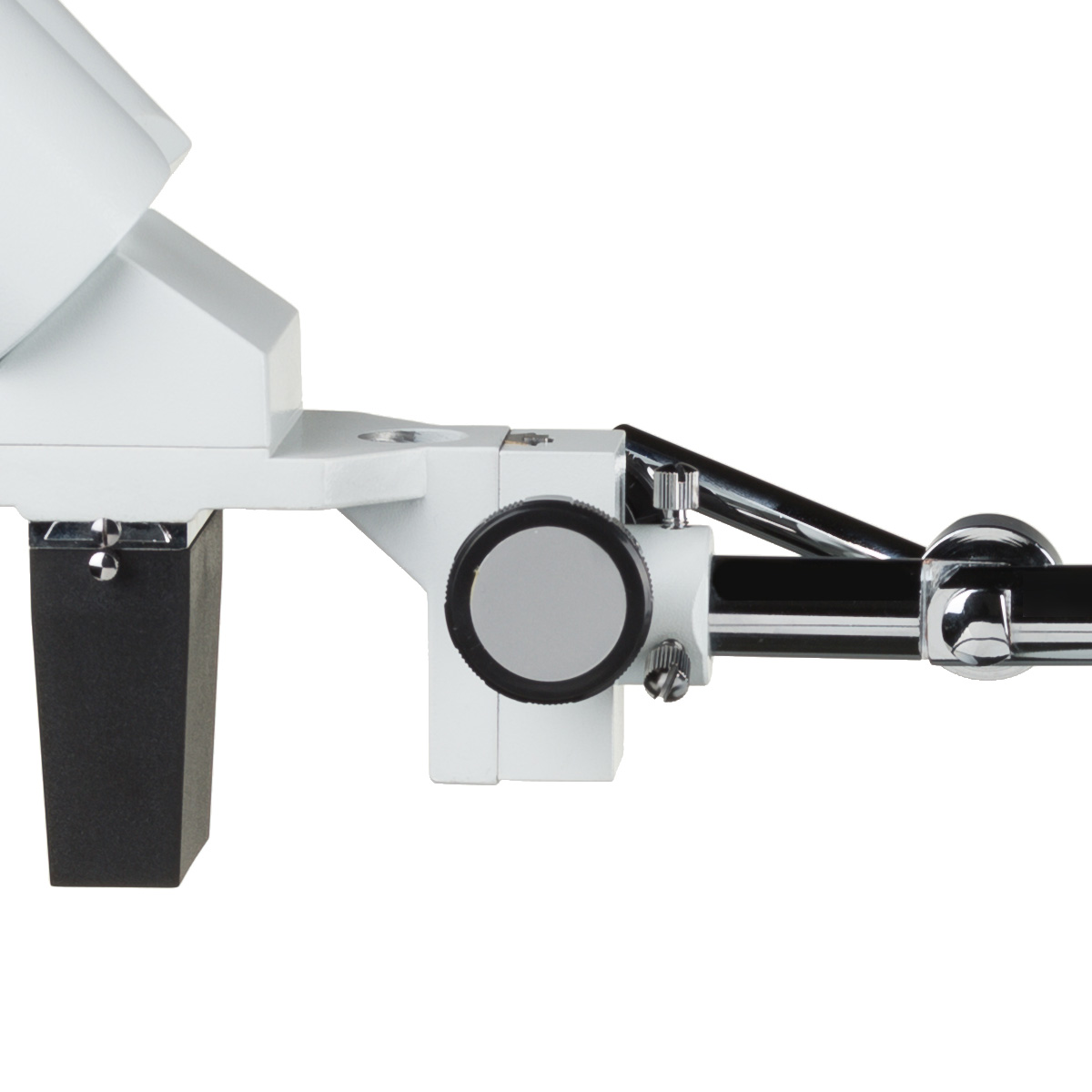 - Гнучка штанга дозволяє регулювати положення голови мікроскопа