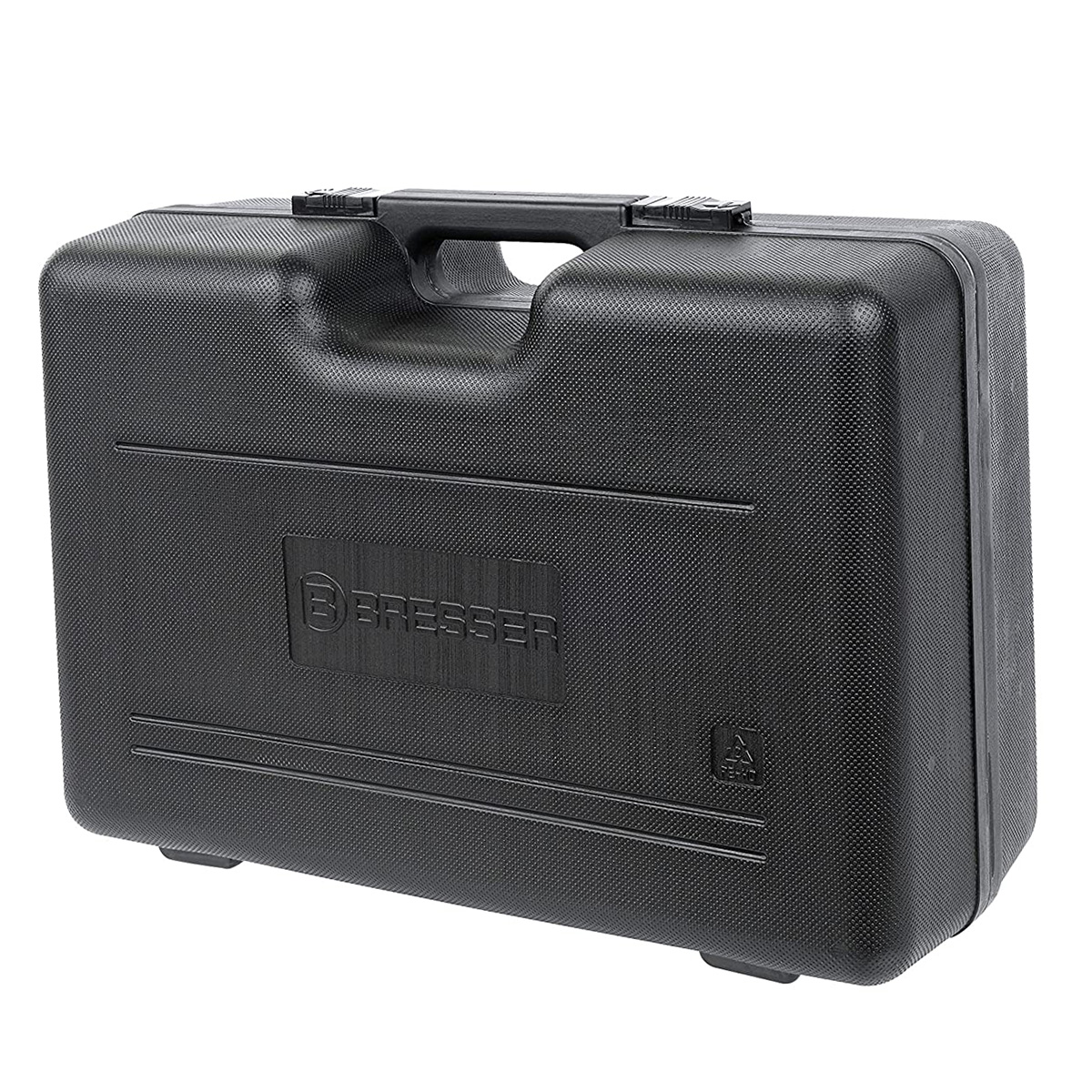 Постачається мікроскоп в спеціальному транспортувальному кейсі, де прилад і аксесуари розміщені у вирізаних в пінополіуретановій основі ложементах. Що стосується комплектації, то Bresser Erudit Basic Bino 40х-400х пропонується покупцям зі спеціальним адаптером для камери мобільного телефону або планшета. Такий перехідник фіксується на тубусі приладу та дає можливість знімати фото і відео за допомогою камери гаджета.