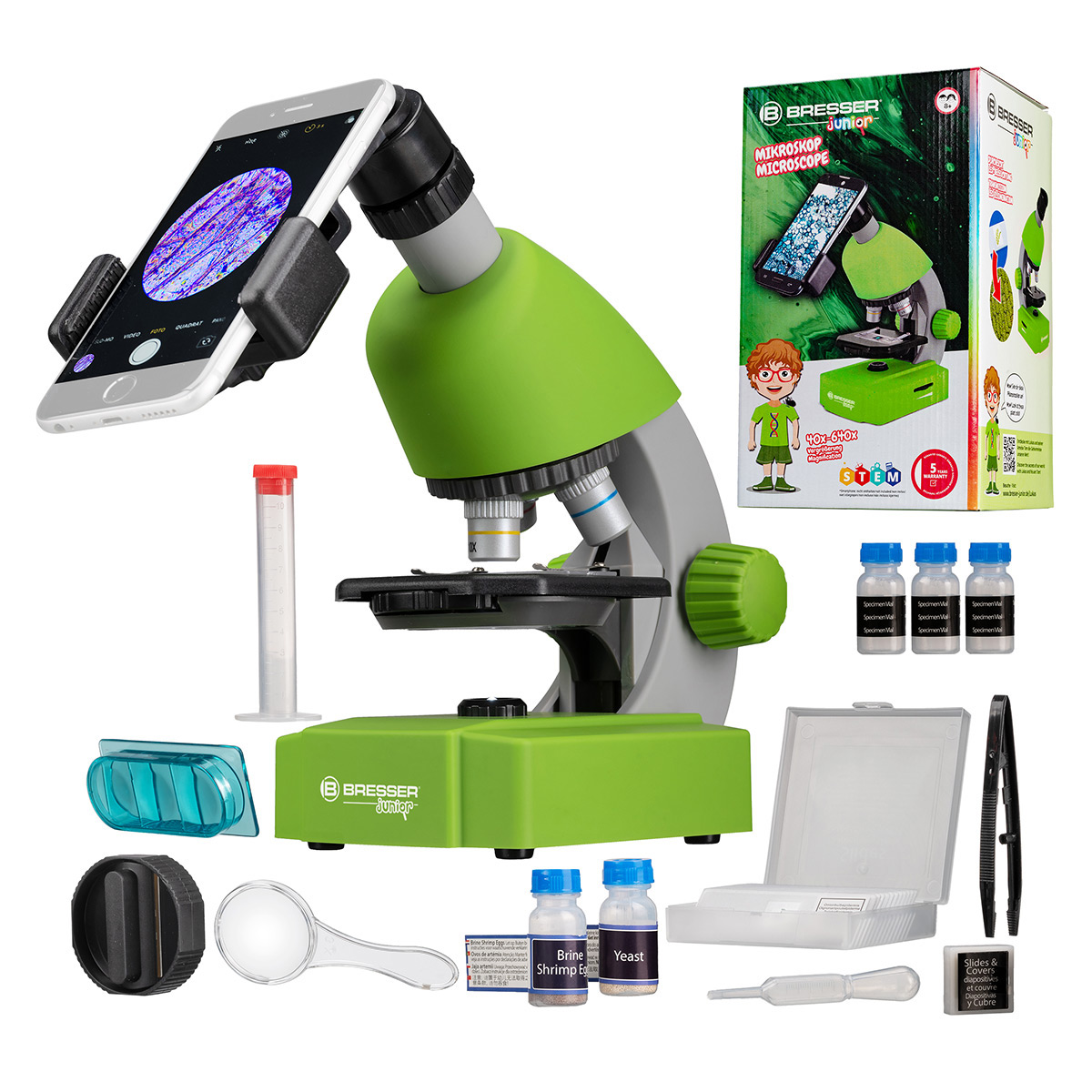 Дитячий мікроскоп BRESSER Junior 40x-640x Green зі смартфон-адаптером