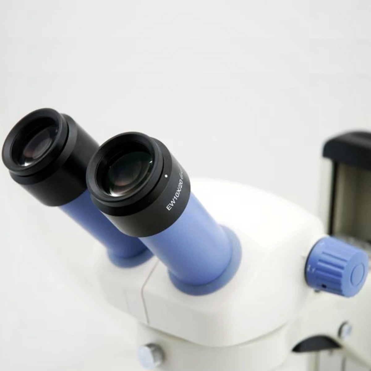 Стереомікроскоп оснащений бінокулярною насадкою з кутом нахилу 45°, що забезпечує комфортне положення голови та знижує втому під час тривалої роботи. Передбачене регулювання міжзіничної відстані в діапазоні 52-75 мм, а також корекція діоптрій ±5 на обох окулярних тубусах, що дозволяє адаптувати оптику під індивідуальні особливості зору та анатомію користувача. Оптична система мікроскопа забезпечує плавне збільшення в діапазоні від 10х до 45х.