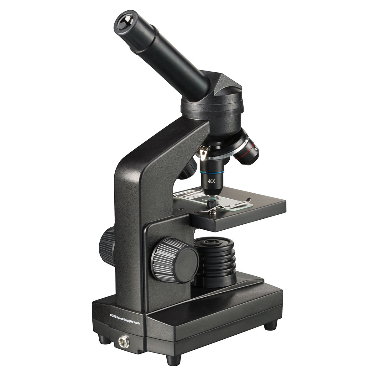 Мікроскоп National Geographic 40x-1280x оснащений двома видами регульованої LED-підсвітки. Включати верхню і нижню лампи можна разом або по черзі, що дозволить вивчати як прозорі, так і тонкі непрозорі предмети. Під предметним столиком є дискова діафрагма з отворами різного діаметру і світлофільтрами, обертаючи диск можна регулювати спрямованість світла та контрастність видимої картинки.
