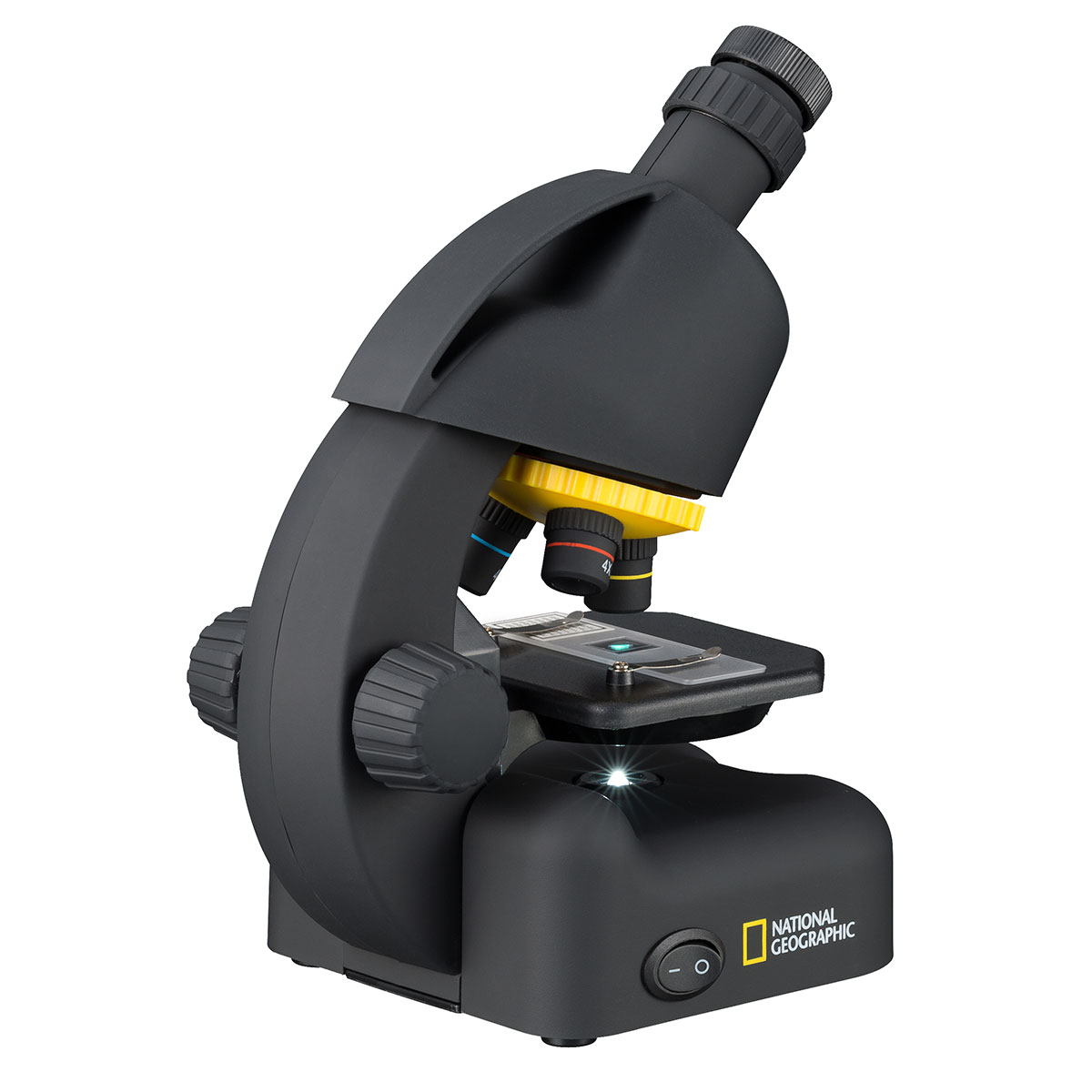 Біологічний мікроскоп National Geographic 40х-640х хоч і відноситься до категорії дитячих, але має дуже непогані можливості. Кратність збільшення змінюється за рахунок переміщення об'єктивів, встановлених у револьверній головці, і вибору відповідного значення на шкалі зум-окуляра. Максимальне збільшення досягає 640 крат. Цього цілком достатньо для мікроскопа початкового рівня: юний дослідник зможе розглянути тонкі зрізи препаратів, різні ниткоподібні волокна, будову тіл дрібних комах та інше. Адаптер для смартфона, що входить в комплект постачання, дозволяє зафіксувати результати експерименту на будь-яку (фронтальну або основну) камеру гаджета. Для надійної фіксації смартфона аксесуар оснащений великою кількістю присосок.