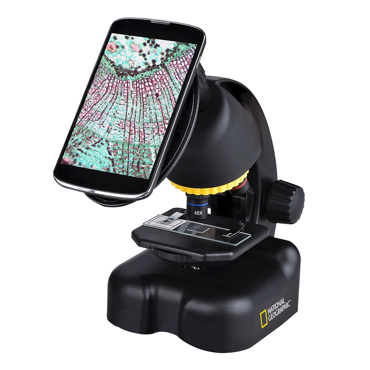 Мікроскоп National Geographic Junior 40x-640x хоч і відноситься до категорії дитячих, але має дуже непогані можливості. Прилад оснащений об'єктивами 4х, 10х і 40х, а також комплектується зум-окуляром 10х-16х — це забезпечує збільшення в діапазоні від 40 до 640 крат. Цього цілком достатньо, щоб розглядати тонкі зрізи препаратів, різні волокна, будову тіл дрібних комах та інше.