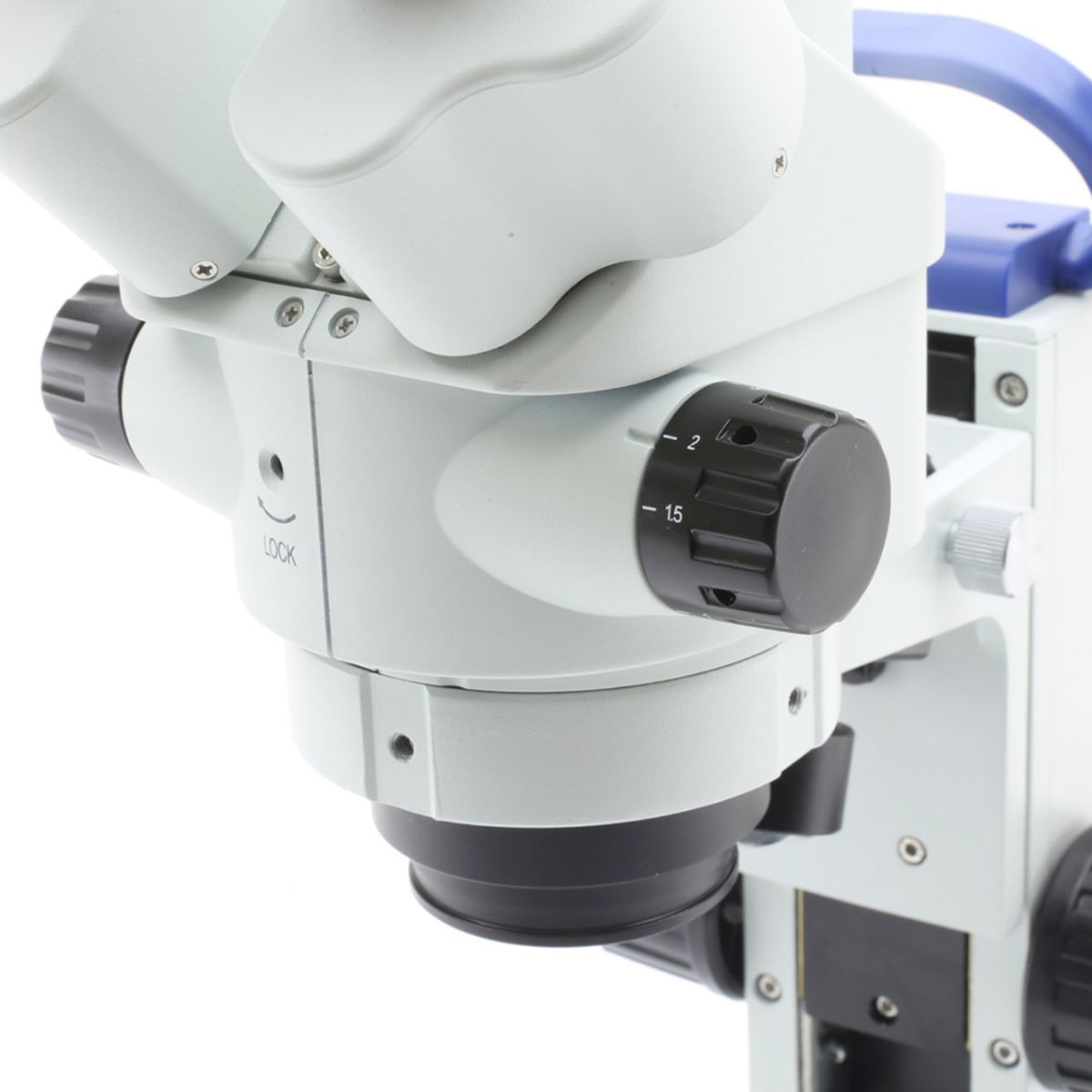 Фокусування здійснюється переміщенням бінокулярної насадки по станині. За переміщення насадки відповідають двосторонні гвинти грубого фокусування з регулюванням сили натягу цих гвинтів. Optika SLX-2 7x-45x Bino Stereo Zoom оснащений стереоскопічним парфокальним зум-об'єктивом з багатошаровим просвітлюючим і протигрибковим покриттям. Ахроматичні об'єктиви мінімізують хроматичні спотворення, що дозволяє сформувати якісне зображення. Оптична схема доповнена ширококутними окулярами з багатошаровим просвітлюючим покриттям і збільшеним виносом зіниці, що дозволяє комфортно працювати в окулярах.