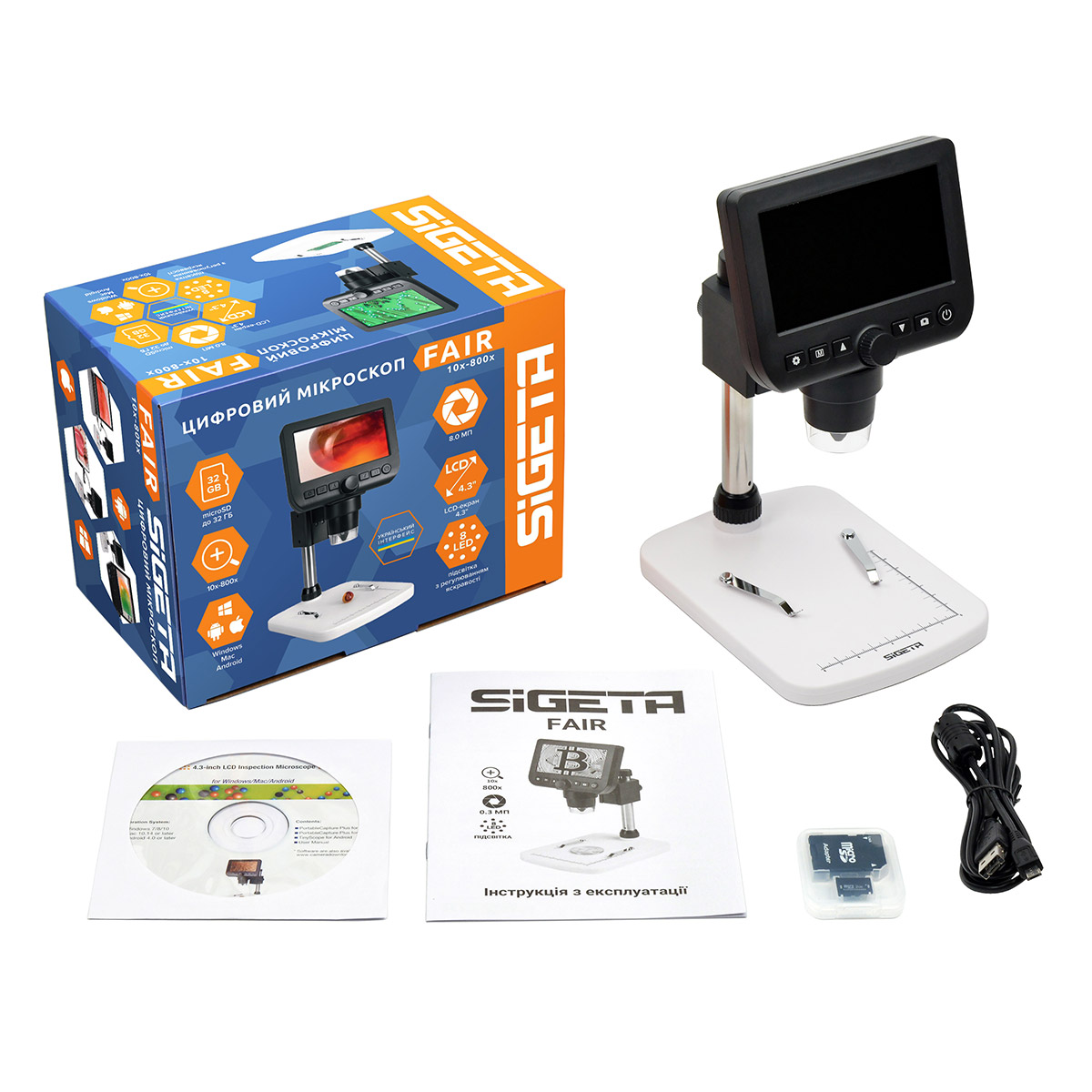- Цифровий мікроскоп SIGETA Fair 10x-800x 4.3" LCD 4687грн.