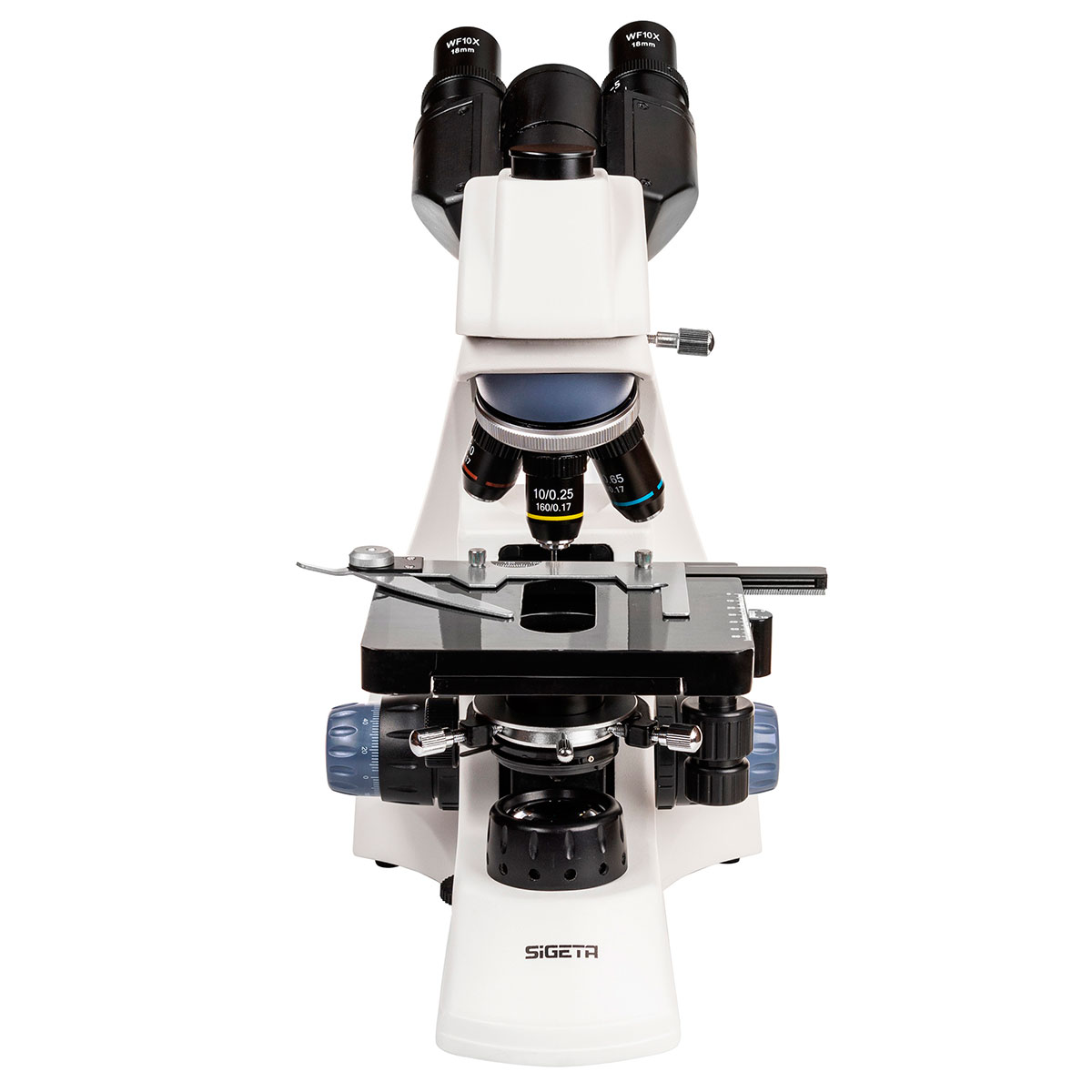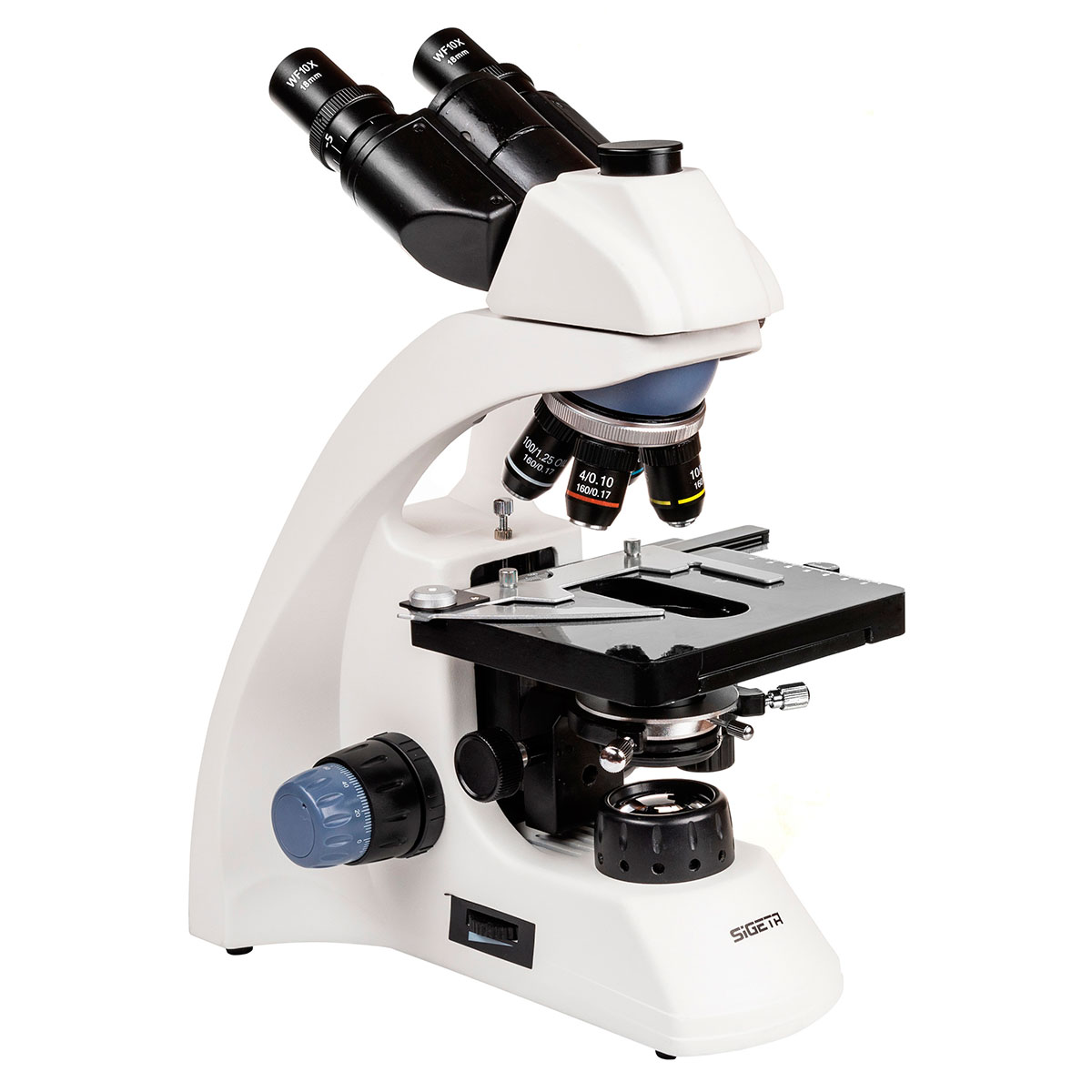 SIGETA MB-304 40x-1600x LED Trino — біологічний тринокулярний мікроскоп з ахроматичною оптикою для проведення лабораторних досліджень у прохідному світлі. Мікроскоп підійде як для навчання, так і для практичного застосування: дослідження біологічних рідин, зразків рослинних та тваринних тканин, вивчення гістологічних препаратів та цитологічних проб, проведення основних бактеріологічних та мікрологічних досліджень.