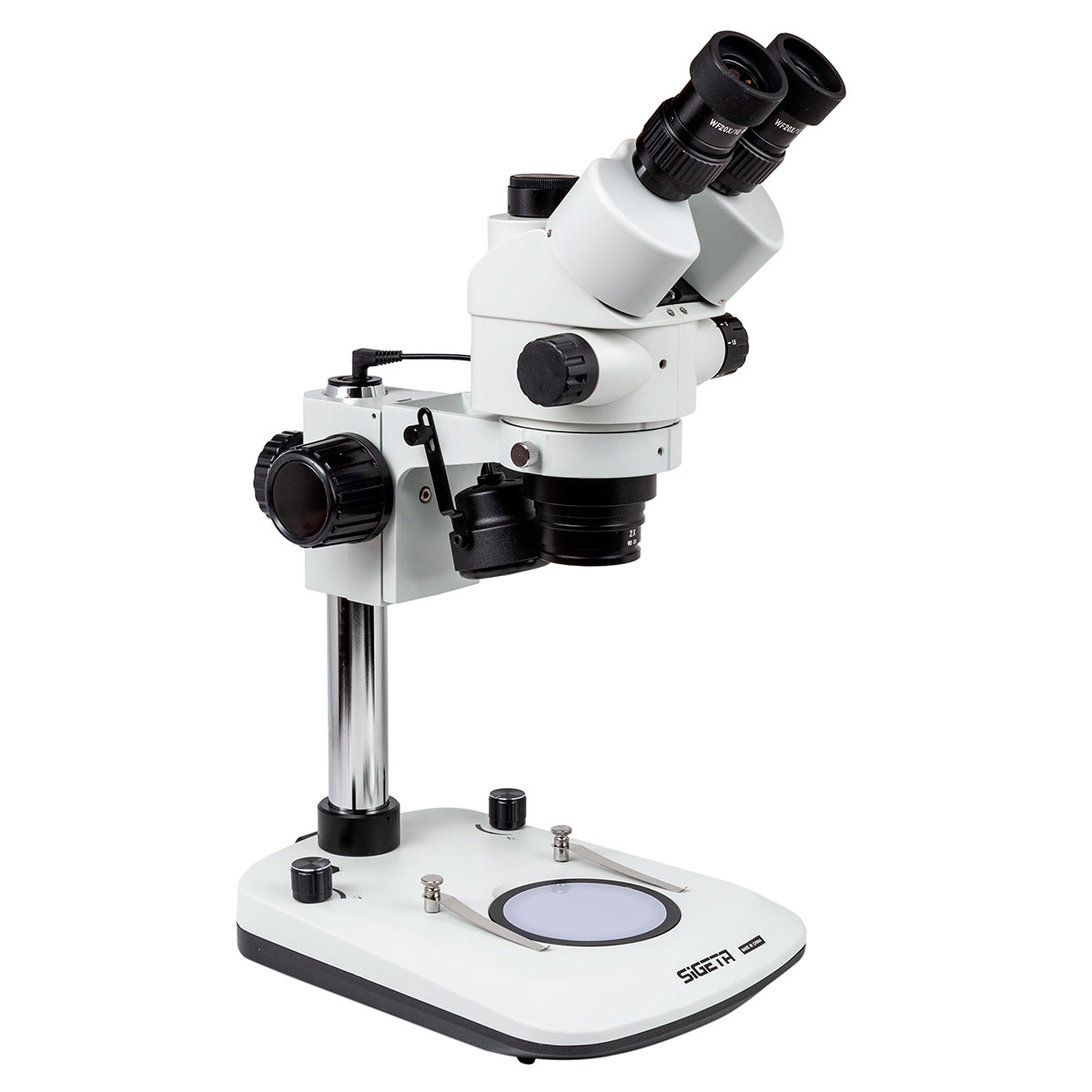 SIGETA MS-220 7x-180x LED Trino Stereo — стереоскопічний мікроскоп високого класу для дослідження об'ємних предметів. Такий тип мікроскопів чудово підходить для радіотехніки, приладобудування, археології, мінералогії, машинобудування, ювелірної справи, медицини, біології та ботаніки. Солідна базова комплектація та серйозний функціонал роблять цю модель чудовим рішенням для ремонту мікросхем (паяння) або ювелірних виробів, контролю якості обробки поверхонь, різноманітних експертиз та оціночної роботи.