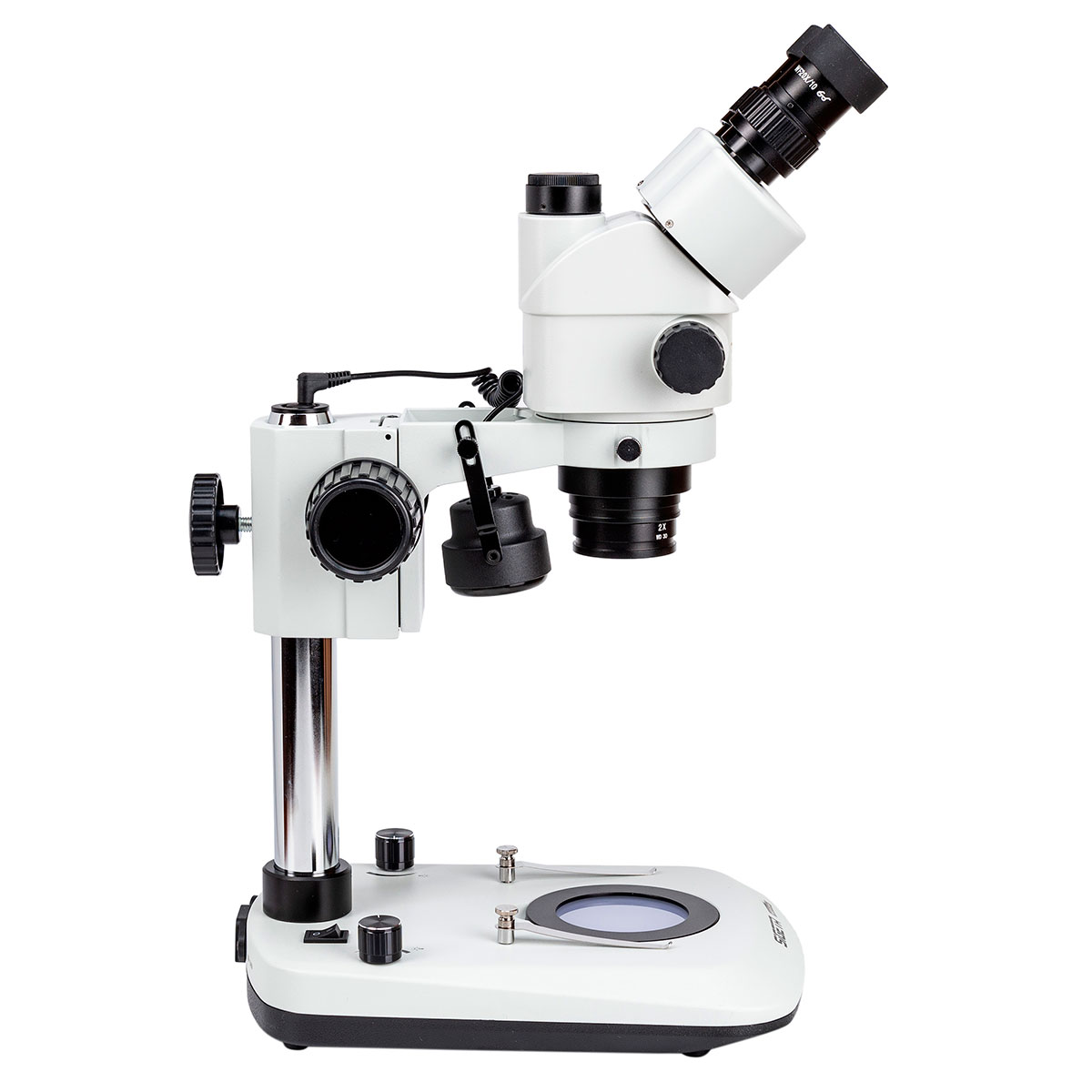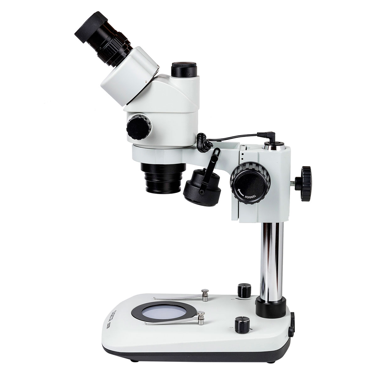 Оптична схема мікроскопа заснована на парі об'єктивів змінної кратності, встановлених під кутом 15° по відношенню один до одного. Модель має плавне налаштування збільшення в діапазоні від 7 до 180 крат. Максимальне збільшення досягається за рахунок насадки 2х та окулярів 20x, які йдуть разом із парою гумових наочників. Основні окулярні тубуси оснащені індивідуальною корекцією діоптрій, а відстань між ними легко регулюється зведенням/розведенням.