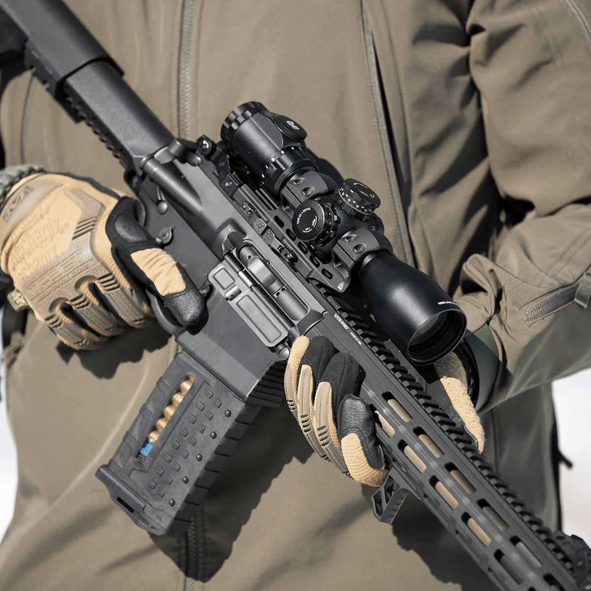 Додаткову стабільність забезпечують стопори віддачі, які запобігають зміщенню прицілу навіть при інтенсивному використанні. Конструкція виготовлена з алюмінію та має полегшувальні вирізи, завдяки чому зберігає високу міцність, але залишається легкою, що мінімізує додаткове навантаження на зброю.