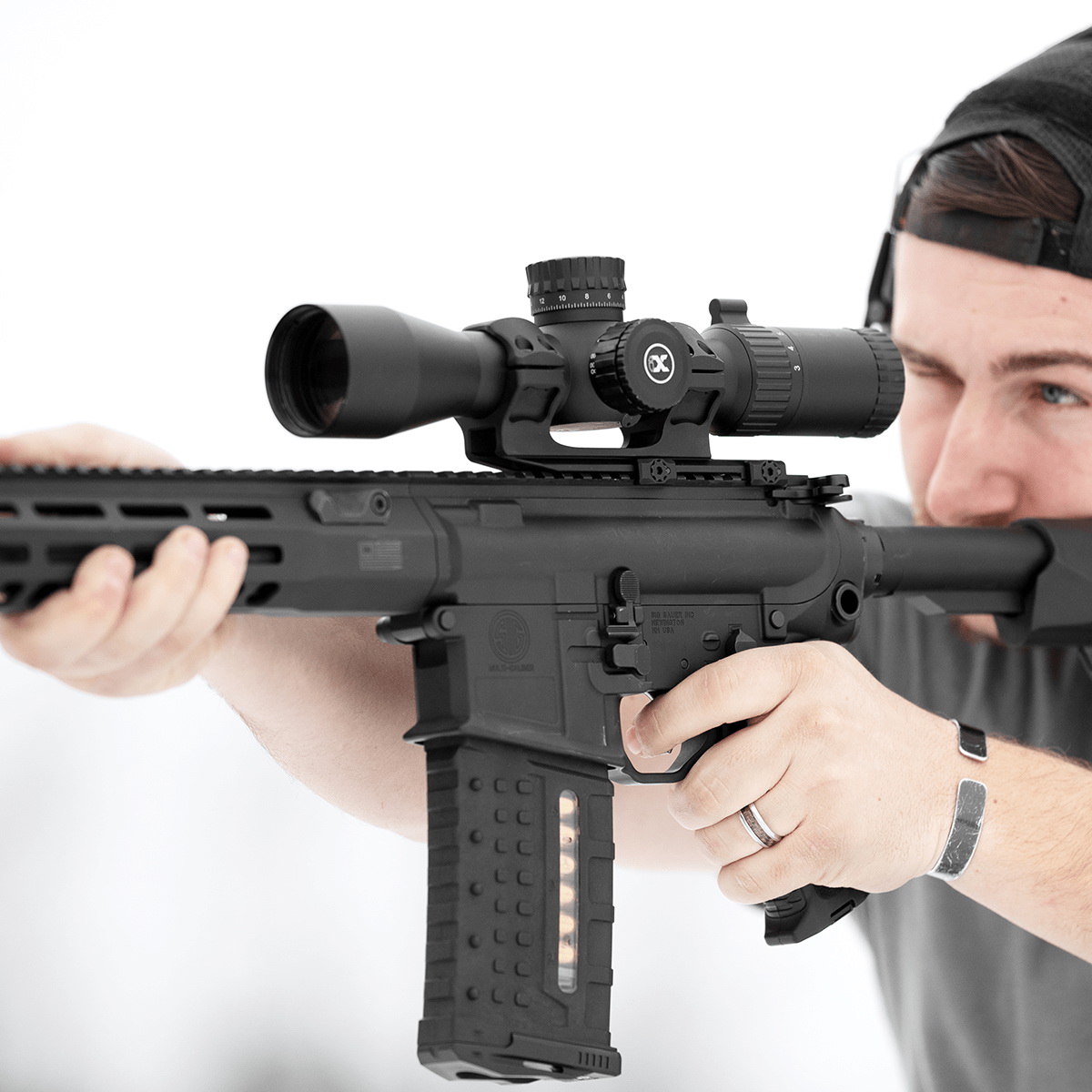 Додаткову стабільність забезпечують стопори віддачі, які запобігають зміщенню прицілу навіть при інтенсивному використанні. Конструкція виготовлена з алюмінію, що зберігає високу міцність, але залишається легкою, що мінімізує додаткове навантаження на зброю.