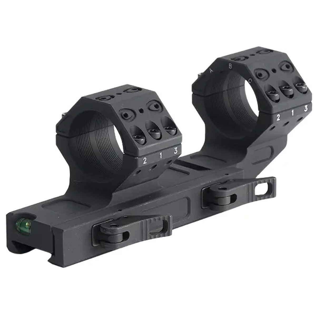 Для додаткової точності в конструкцію вбудований бульбашковий рівень, який допомагає уникнути перекосів при установці, покращуючи точність кожного пострілу. Кріплення монтується на планку Picatinny, що є стандартом у тактичній і спортивній зброї, гарантуючи стабільність і простоту встановлення.