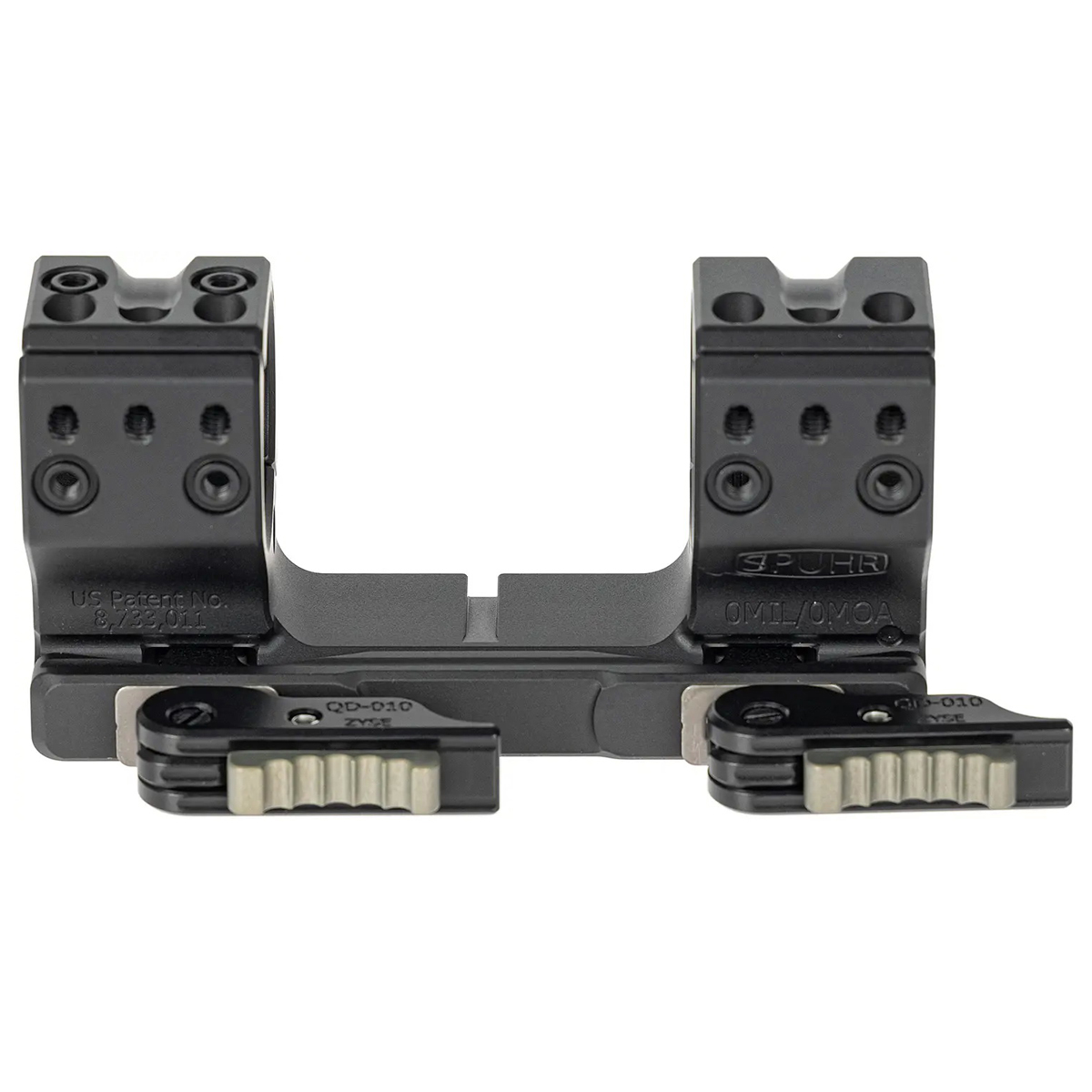 Spuhr QDP-4002 34 мм High — моноблок, призначений для встановлення сучасних високоточних оптичних прицілів з діаметром центральної трубки 34 мм на зброю, оснащену планками Picatinny. Версія QDP-4002 є високою (High), з висотою основи 21 мм, це забезпечує підйом оптичної осі прицілу на 38 мм над поверхнею планки. Такий параметр підходить для комфортного використання прицілів з великими об'єктивами (50-56 мм і більше) на карабінах з прямими прикладами, як-от платформи AR-10/AR-15, а також на багатьох болтових гвинтівках, забезпечуючи правильне положення голови стрільця та запобігаючи напрузі шиї. Корисною особливістю моноблоків Spuhr є інтегрований у задню частину основи бульбашковий рівень. Його розташування дозволяє стрільцю контролювати горизонтальний завал гвинтівки, не змінюючи положення голови та не відриваючись від прицілу, що є важливим для здійснення точних пострілів на великі дистанції.