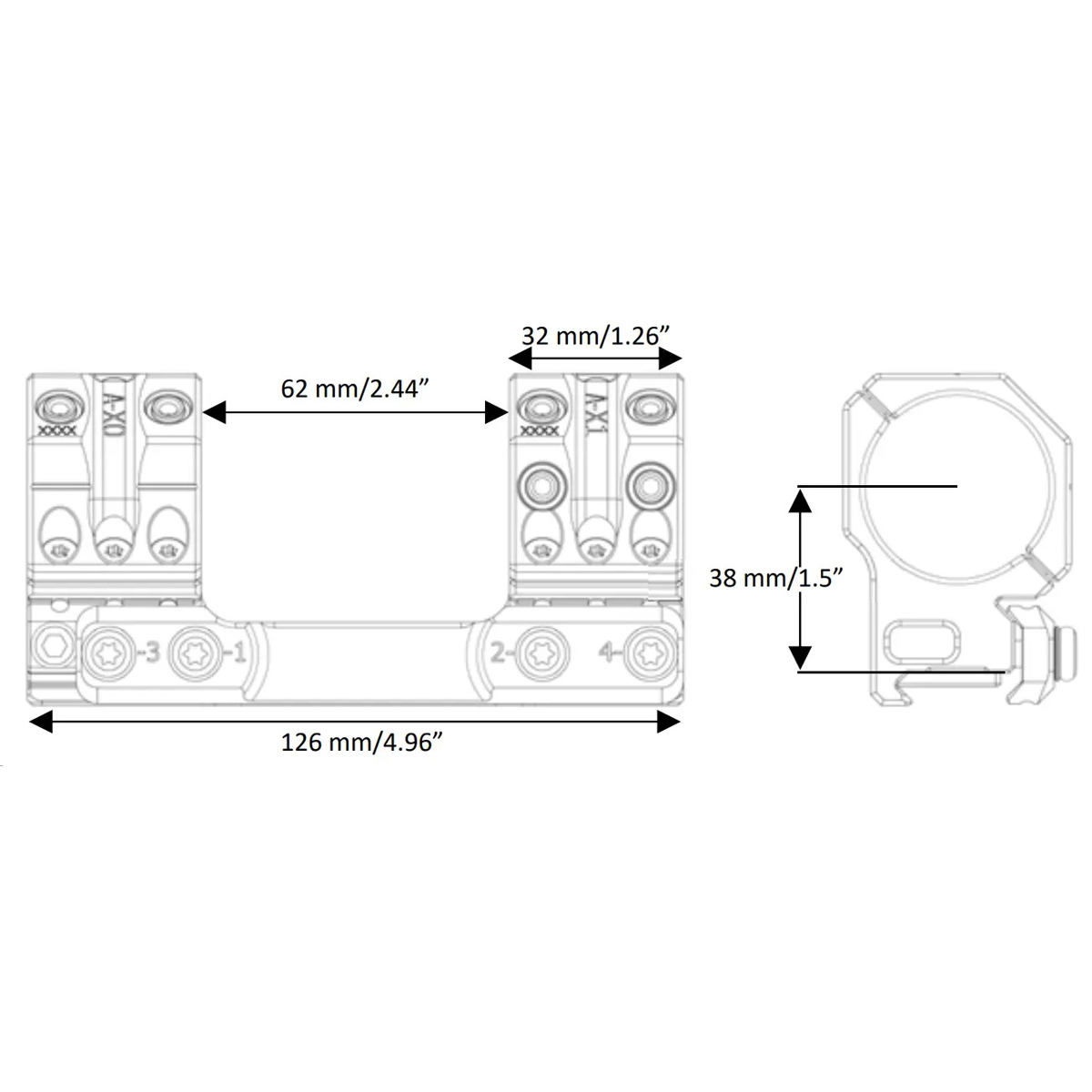 Моноблок оснащений кутом нахилу 20.6 MOA, що дозволяє максимально використовувати можливості оптичного прицілу. Це особливо важливо для стрільби на далекі відстані, де кожен міліметр зміщення має значення. Висота до оптичної осі становить 38 мм, що забезпечує комфортне прицілювання, сумісність із більшістю оптичних прицілів.