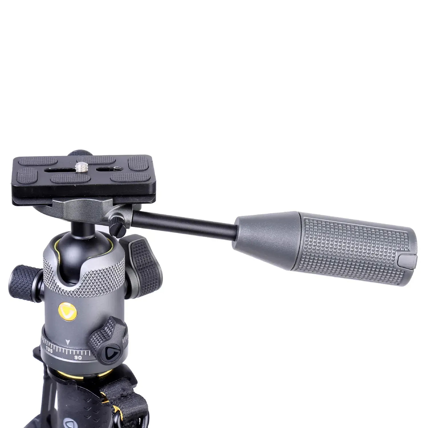 Особливістю даної моделі є знімна кульова головка VEO 2 BP-50, яка забезпечує плавний поворот по горизонталі на 360° та нахил у діапазоні +/- 15°. Це дозволяє створювати панорамні кадри та легко змінювати кут знімання. Головка оснащена подовженою штативною платформою стандарту Arca-Swiss, що гарантує сумісність із широким спектром професійного обладнання.