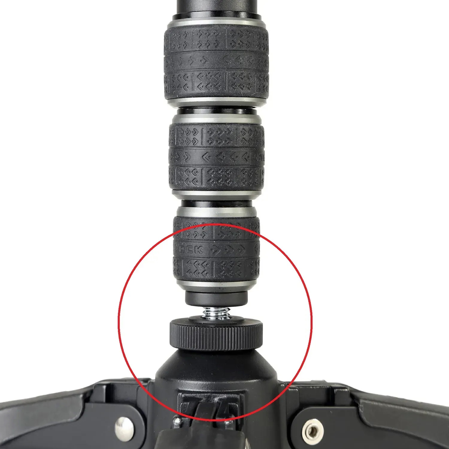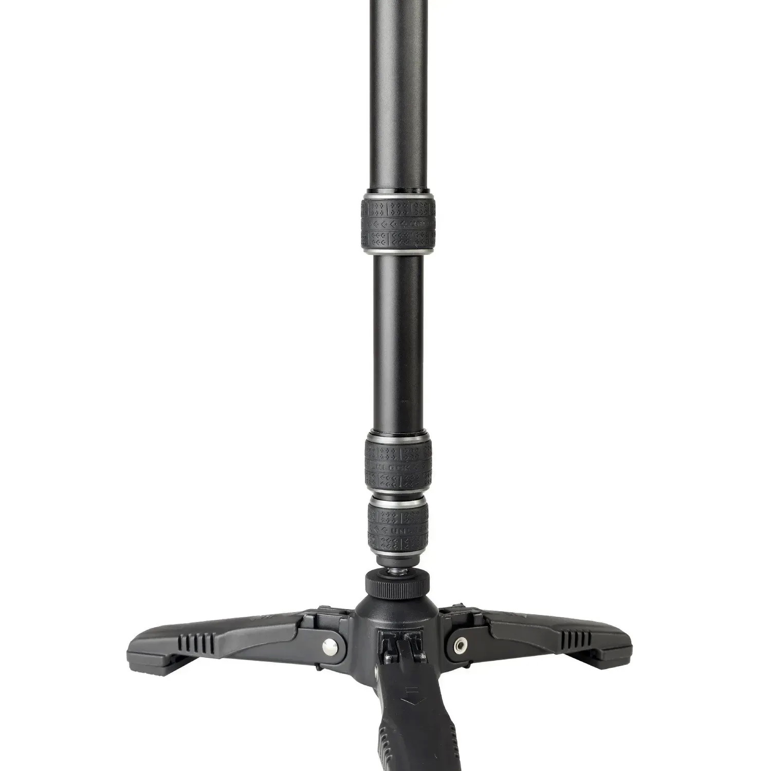 Для підвищеної стійкості монопод оснащений системою Tri-Feet – трьома невеликими опорами, які сприяють рівновазі та мінімізують коливання під час знімання. Завдяки кульовому шарніру в основі, монопод можна легко нахиляти в будь-якому напрямку та обертати навколо своєї осі на 360°, що дозволяє знімати панорамні кадри навіть без штативної головки. Для забезпечення максимальної стійкості передбачений гайковий фіксатор, який надійно блокує рух шарніра. Телескопічна ручка забезпечує комфортне управління та полегшує процес знімання з різних ракурсів.