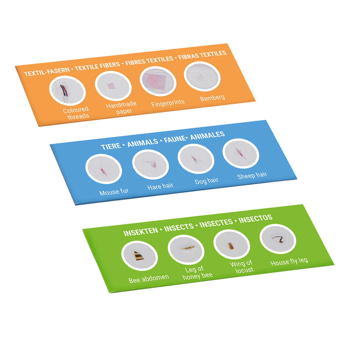 Усі слайди розділені на 6 груп, де кожен слайд містить 4 зразки. Набір відмінно підходить для освітніх цілей та знайомства дитини зі світом мікроскопії. Також набір буде корисним для кращого розуміння шкільного курсу біології.