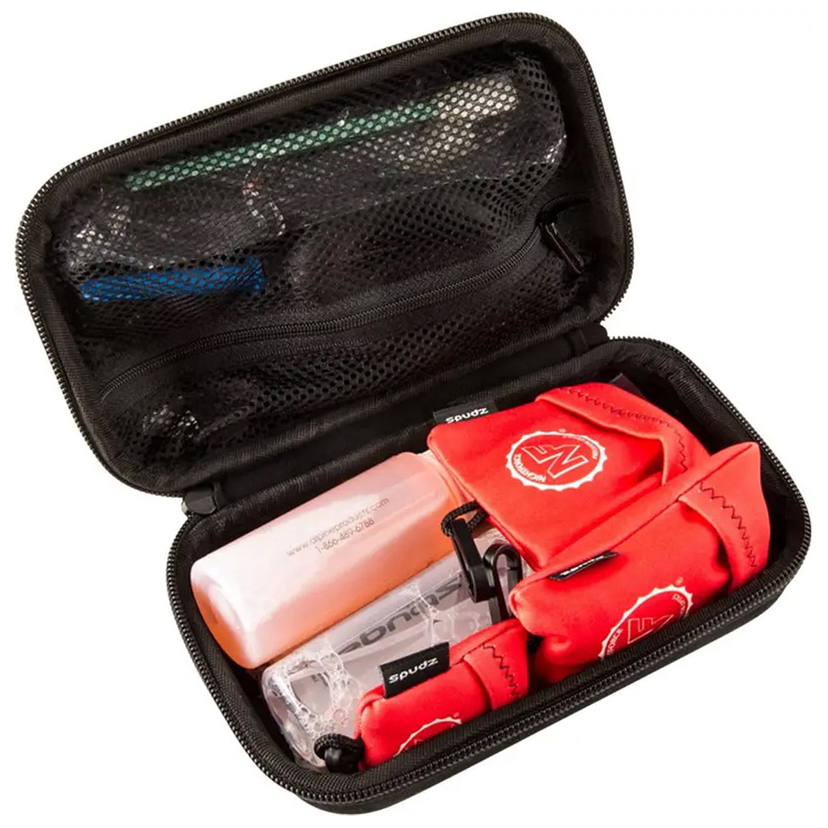 Основу набору становлять два спреї: Sudz 350 мл — універсальний очисник для лінз, який легко справляється з пилом, жиром та забрудненнями, не залишаючи подряпин і розводів, а також Sudz Fogzoff 350 мл — засіб проти запотівання, який створює на поверхні лінзи прозорий антиконденсатний шар. Для сухого очищення або обробки перед вологим чищенням передбачена груша для здування пилу, яка м’яко видаляє дрібнодисперсні частинки, не торкаючись поверхні скла.