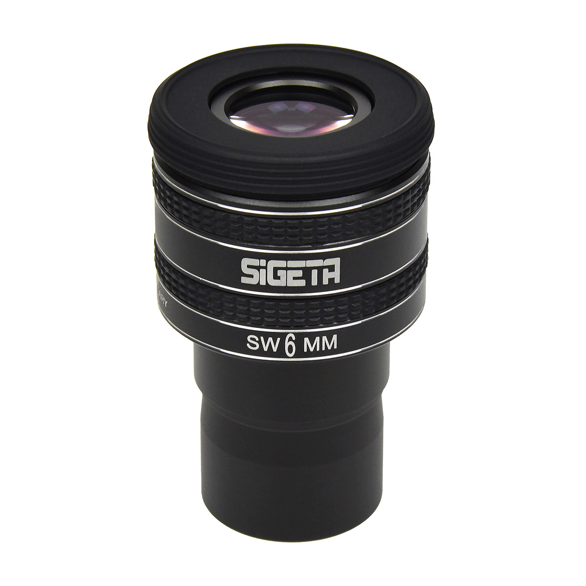 SIGETA 58 SERIES 6 мм — ширококутний окуляр для телескопа, який пропонує оптимальне збільшення для загальних спостережень за планетами Сонячної системи та Місяцем. Відмінною особливістю окуляра є винос зіниці у 16 мм, що дозволяє вести спостереження в окулярах.