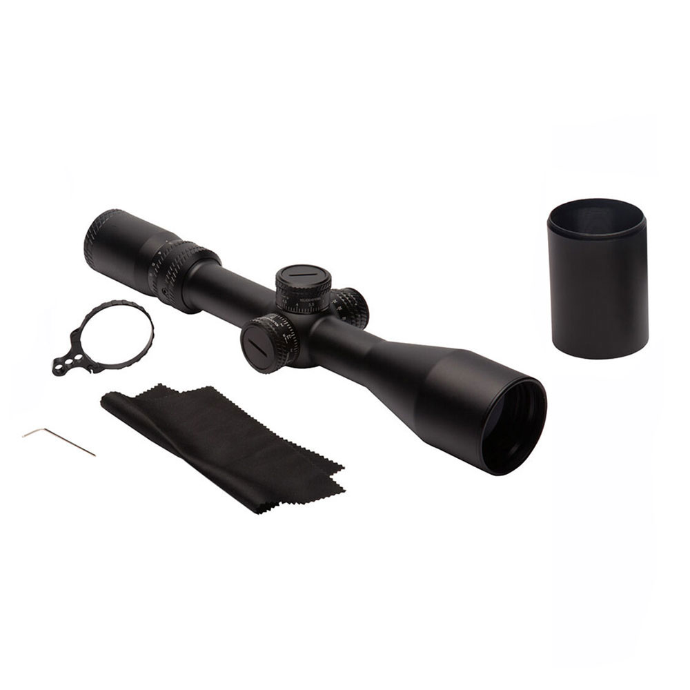 Приціл постачається разом з відкидними захисними кришками, блендою для захисту від сонця та поворотним важелем для регулювання збільшення.