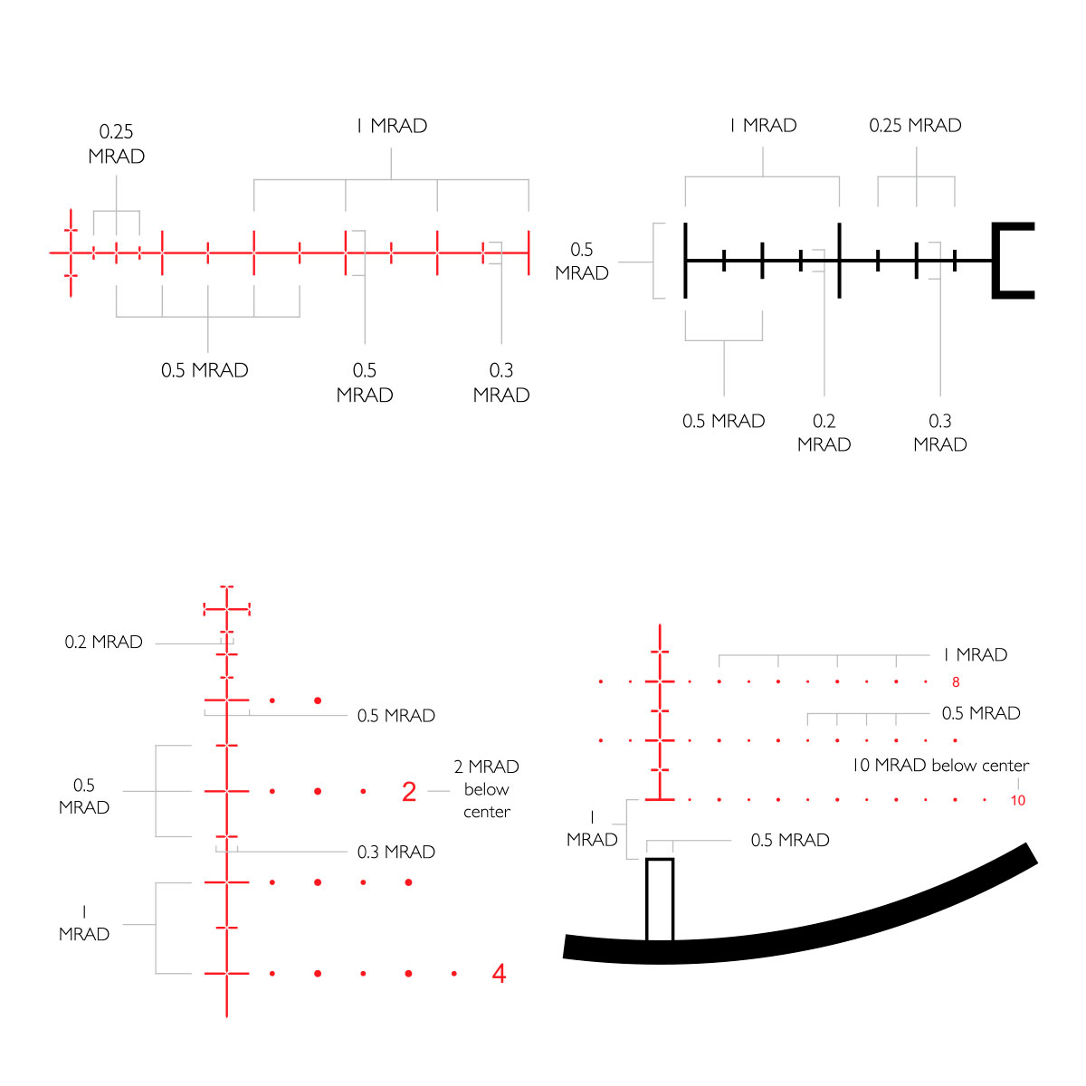 - Ціна поділки механізму введення поправок: 1/10 MRAD