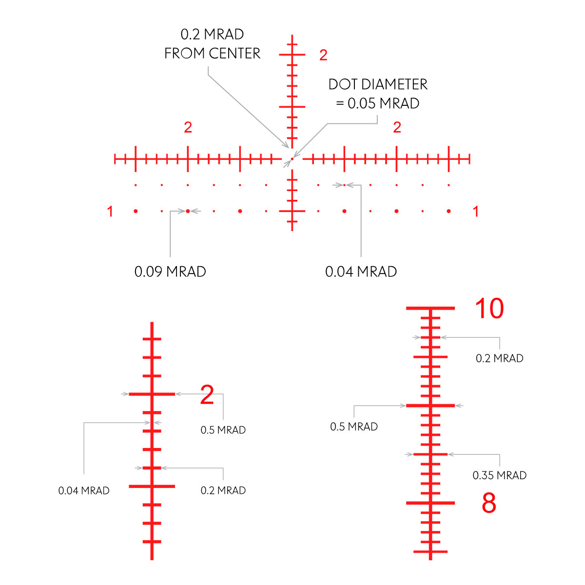 - Підсвічування прицільної сітки: Red (11 рівнів яскравості з вимиканням проміжних позицій)