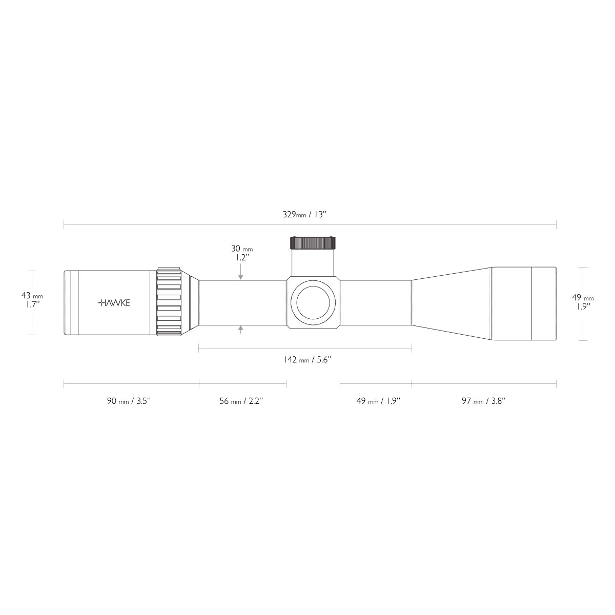 - Довжина прицілу: 329 мм