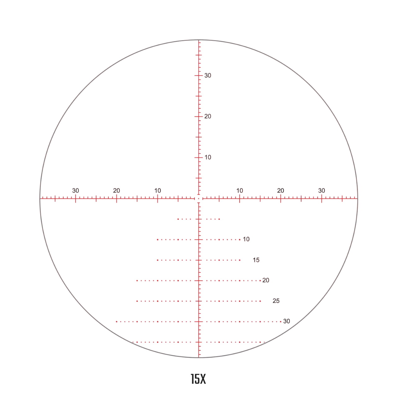 Модель побудована на основі першої фокальної площини (FFP), що дозволяє прицільній сітці масштабуватись разом зі зміною кратності. Це особливо зручно при визначенні поправок на різних збільшеннях. У прицілі використовується прецизійна сітка APRS5 FFP IR MIL, яка відзначається точністю та зручністю в роботі з MIL-поправками. Підсвічування сітки дозволяє комфортно працювати при слабкому освітленні або в сутінках, зберігаючи високу ефективність прицілювання.
