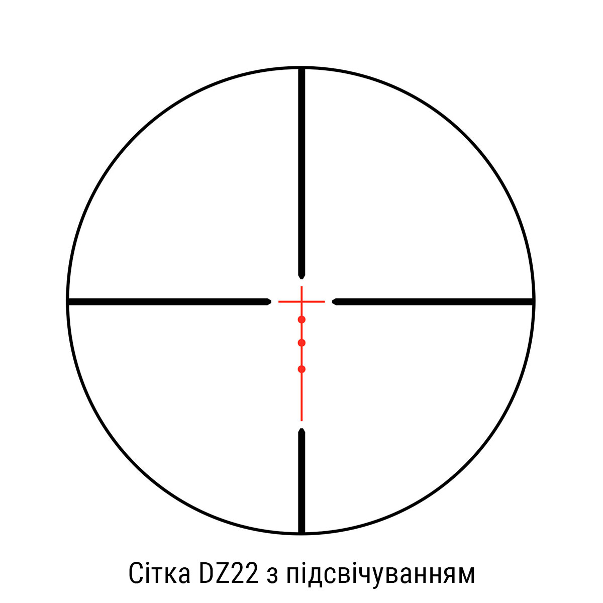 - Підсвічування прицільної сітки: Red, 6 рівнів яскравості