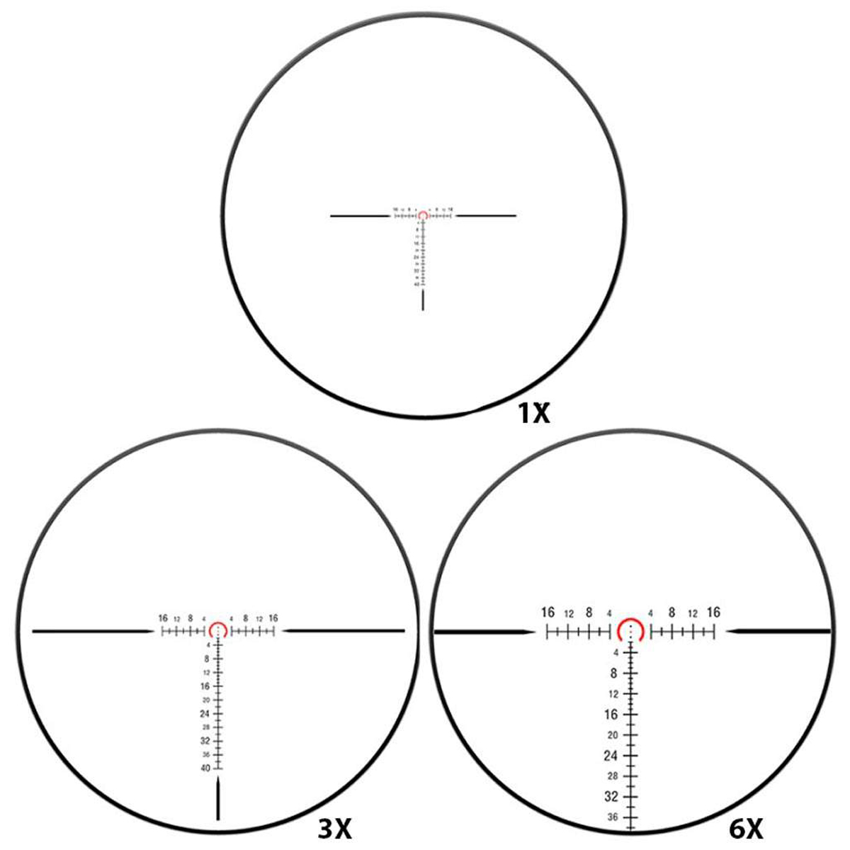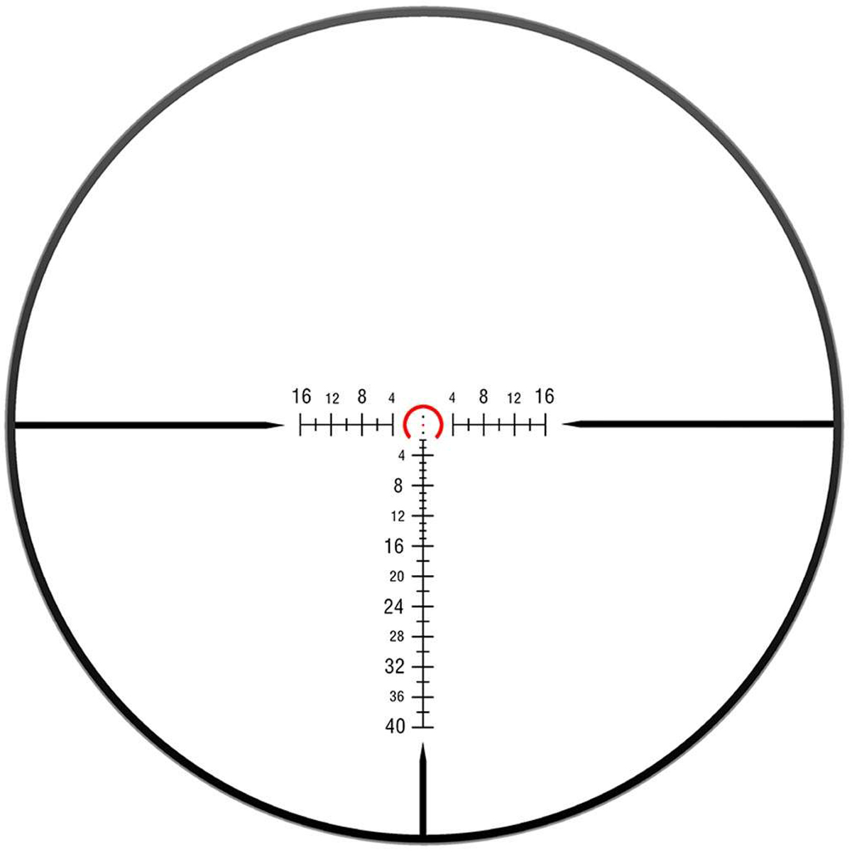 Приціл отримав тактичну сітку SFIR FFP, розташовану у першій фокальній площині (First Focal Plane). Це означає, що кутові розміри сітки залишаються правильними при будь-якому збільшенні, це дозволяє впевнено вносити поправки та визначати відстань до цілі. Центральний елемент сітки у формі підкови має яскраве підсвічування червоного кольору з шістьма рівнями інтенсивності, надаючи ідеальний контраст на будь-якому фоні та в різний час доби. Налаштування від паралакса фіксоване на дистанції 100 ярдів (91.4 метра), що є оптимальним для даного типу прицілів.