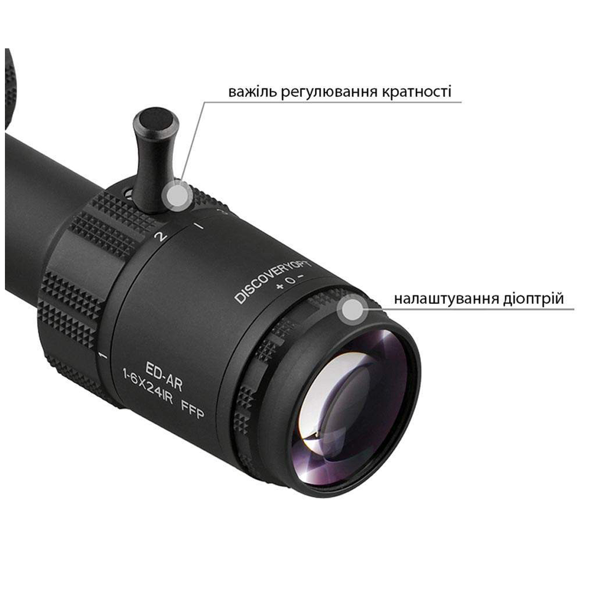 Оптичний приціл DISCOVERY OPTICS ED-AR 1-6x24IR (FFP, Circle-Dot, 30 мм)