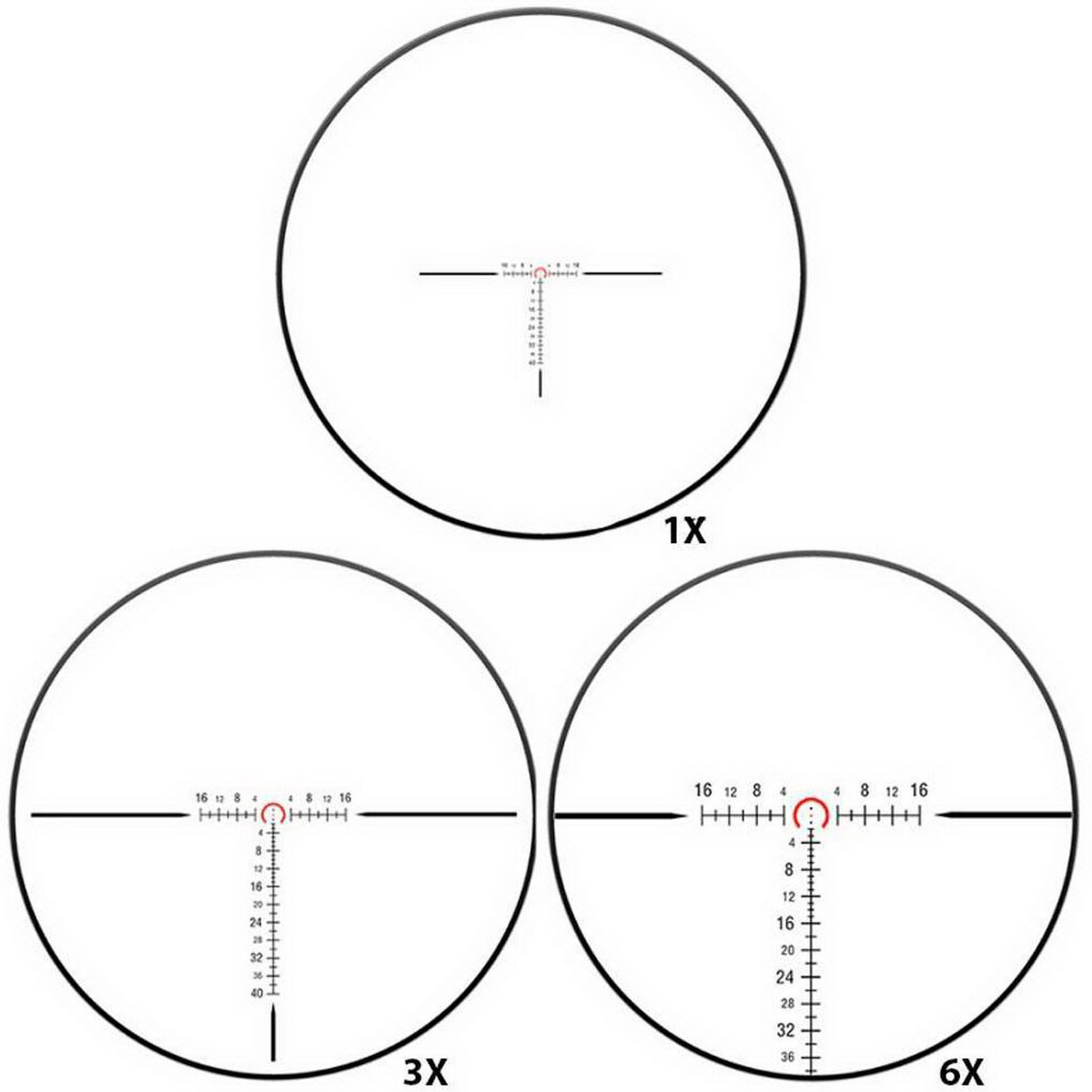 Приціл оснащений практичною та ефективною прицільною сіткою типу Circle-Dot, яка витравлена на склі для максимальної надійності. Ця сітка підходить для динамічної стрільби: велике коло забезпечує надзвичайно швидке захоплення цілі на 1x кратності, в той час, як центральне напівколо дозволяє здійснювати точні постріли на більших дистанціях. Для покращення видимості прицільної марки в складних умовах освітлення або на темному тлі передбачене 6-рівневе підсвічування червоного кольору. Це дозволяє стрільцю миттєво адаптуватися до будь-якої ситуації, від яскравого сонячного дня до сутінків, завжди зберігаючи чіткий контроль над точкою прицілювання.