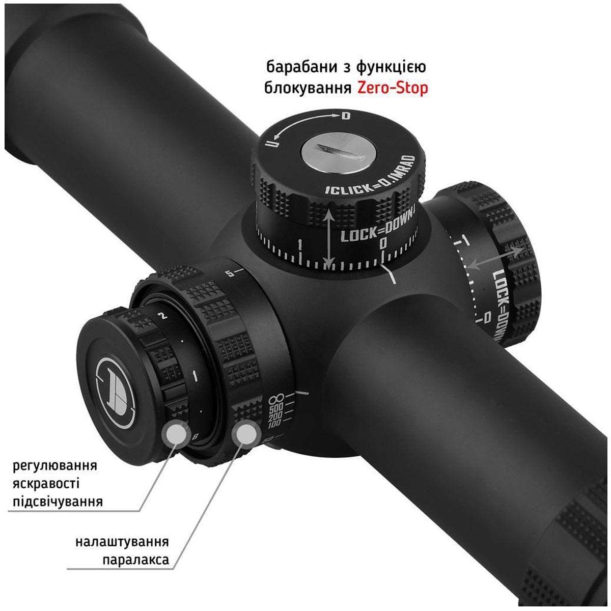 - Підсвічування прицільної сітки: 6 рівнів яскравості