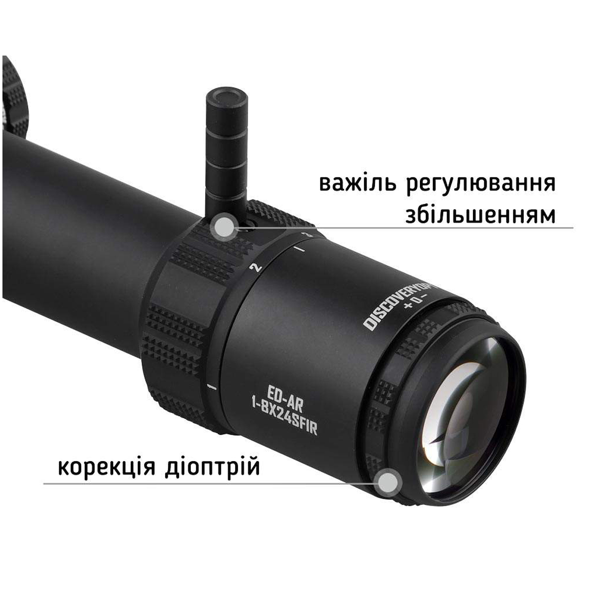 Оптичний приціл DISCOVERY OPTICS ED-AR 1-8x24SFIR (FFP, Circle-Dot, 34 мм)