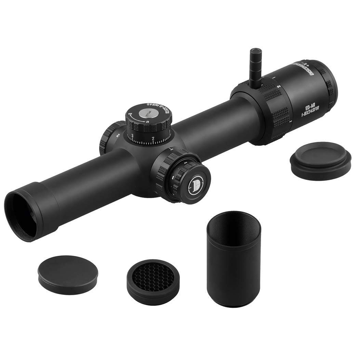 Discovery Optics ED-AR 1-8x24SFIR — це універсальний оптичний приціл для стрільби з платформ типу AR, а також інших карабінів, призначених для динамічної стрільби, тактичних завдань, змагань та полювання. Компактна конструкція та змінне збільшення від 1x до 8x надають стрільцю повну гнучкість у будь-якому сценарії: від ближнього бою, де приціл працює як коліматор, до впевненої стрільби на середні дистанції при максимальному зумі. Такий діапазон робить модель особливо привабливою для тих, хто цінує швидке перемикання між різними типами цілей.