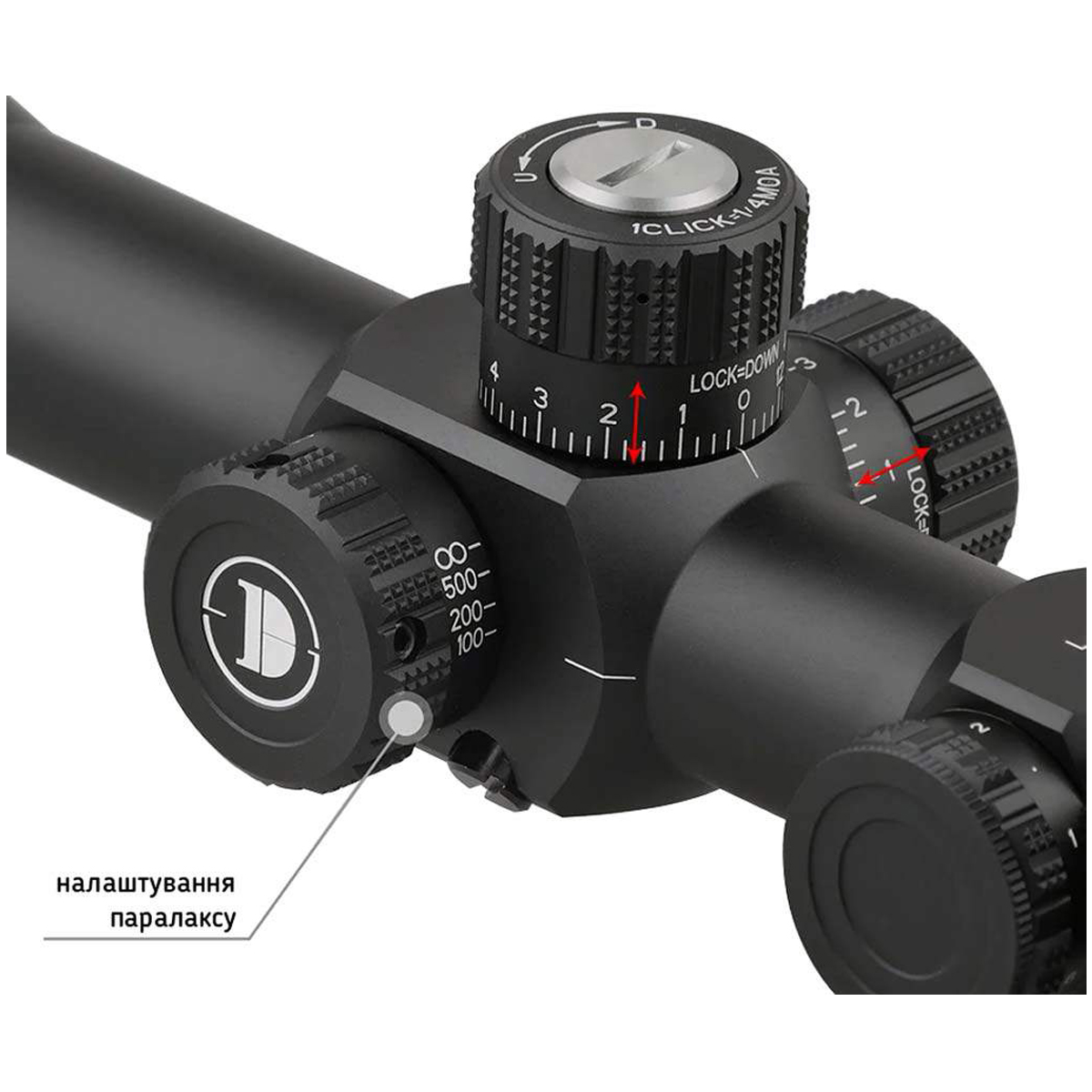 - Підсвічування прицільної сітки: 6 рівнів яскравості