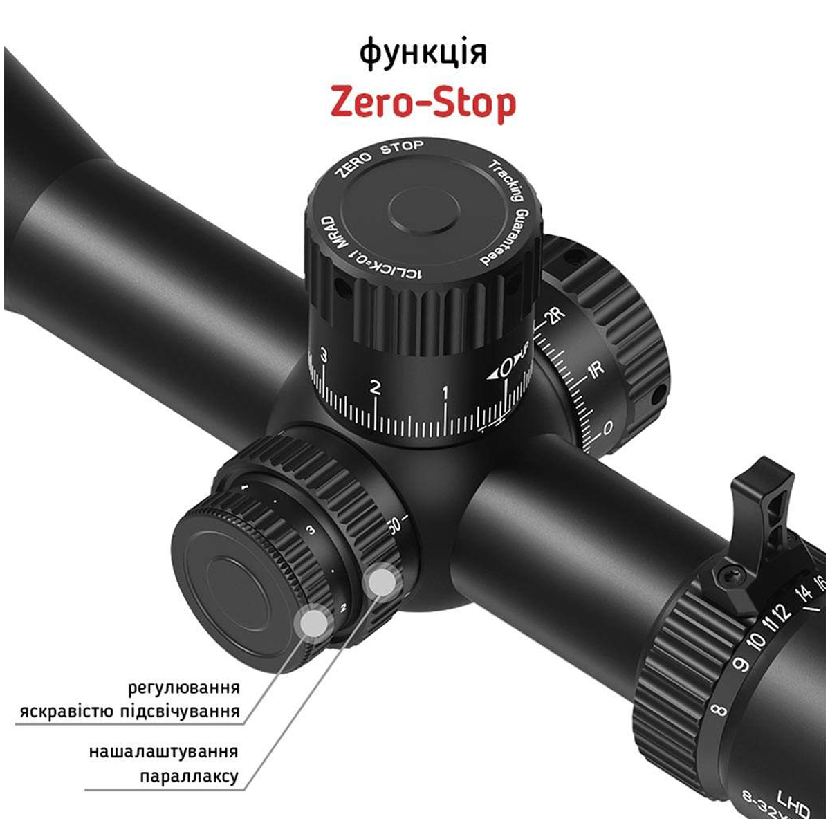 - Підсвічування прицільної сітки: 6 рівнів яскравості
