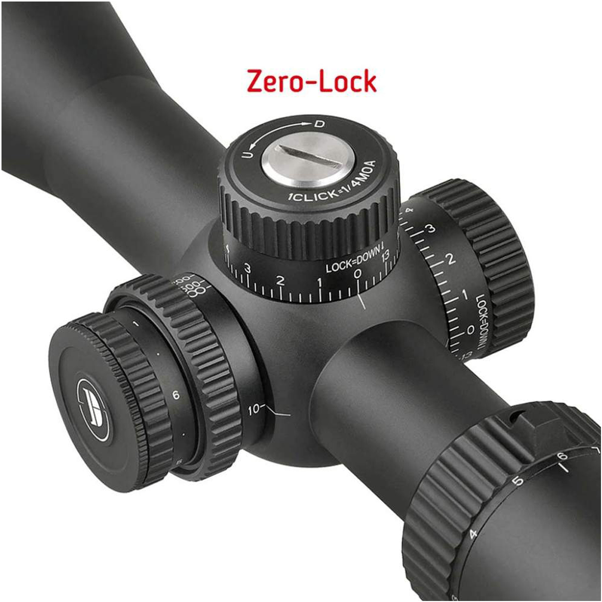 Оптична система прицілу спроєктована для забезпечення комфорту та ефективності. Велике віддалення вихідної зіниці, що становить 96-90 мм, гарантує безпеку навіть при використанні на гвинтівках потужних калібрів. Діаметр вихідної зіниці, який варіюється від 14.1 мм до 3.5 мм, пропонує швидке та легке захоплення цілі. Широке лінійне поле зору на 100 метрів від 12.9 м до 3.1 м, що у кутовому еквіваленті становить 7.38-1.78°, дає чудову ситуаційну обізнаність та можливість легко контролювати простір навколо цілі. Механізм введення поправок надає великий діапазон регулювання по вертикалі та горизонталі, що складає 110 MOA. Тактичні барабани з ціною кліку в 1/4 MOA та функцією Zero-Lock дозволяють не тільки точно пристріляти зброю, але й надійно зафіксувати налаштування, унеможливлюючи їх випадкове збиття під час транспортування чи активних дій.