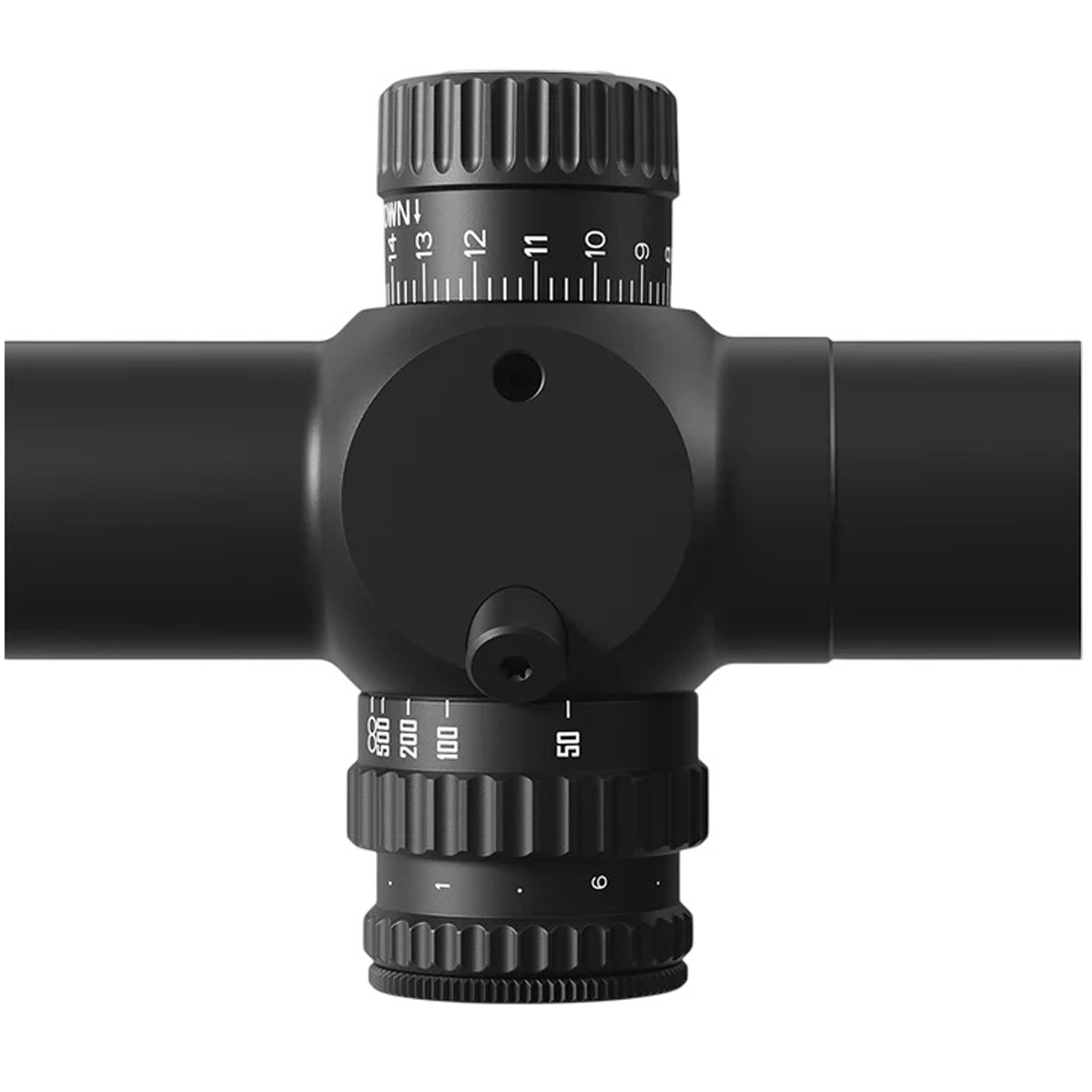 Оптична конструкція прицілу забезпечує комфортне спостереження завдяки стабільному віддаленню вихідної зіниці в діапазоні 86-87 мм. Діаметр вихідної зіниці становить від 13.3 мм до 3.3 мм, а широке поле зору (6.82-1.66°, або 11.9-2.9 м на 100 м) дозволяє легко знаходити ціль та контролювати навколишні обставини. Механізм введення поправок має діапазон регулювання: 86 MOA по вертикалі та 60 MOA по горизонталі. Такий значний запас поправок, що зазвичай притаманний більшим та важчим прицілам, дозволяє впевнено вести стрільбу на великі дистанції. Барабани з чіткими кліками ціною 1/4 MOA забезпечують точне налаштування.