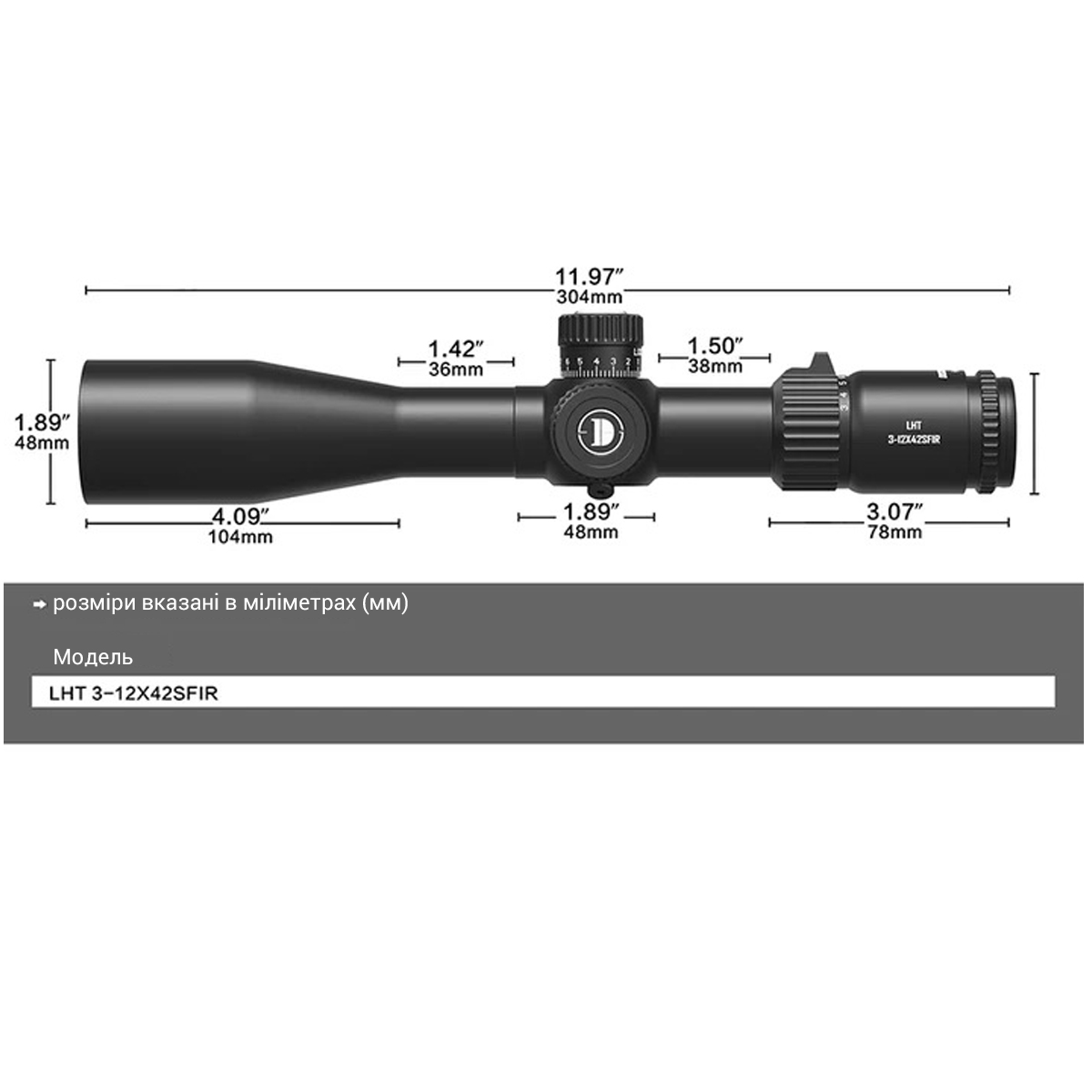 - Оптичний приціл DISCOVERY OPTICS LHD-NV 3-12x42 SFIR (SFP, SS SFP, 30 мм)