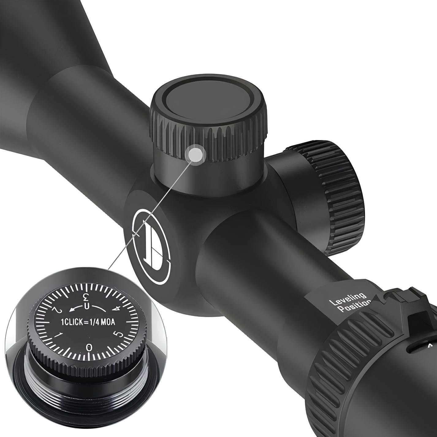 Прицільна сітка розташована у другій фокальній площині (SFP), що дозволяє зберігати її незмінні візуальні розміри при будь-якому збільшенні — це особливо зручно для стрільби на змінних дистанціях. Приціл оснащений прицільною сіткою DL SFP MOA, що є аналогом популярної сітки Mil-Dot. Оскільки сітка знаходиться в другій фокальній площині, це дозволяє зберігати її постійний розмір незалежно від кратності. Це забезпечує швидке та інтуїтивне прицілювання. Для покращення видимості прицільної марки в умовах недостатнього освітлення або на темному тлі передбачене 6-рівневе підсвічування червоного кольору. Тактичні барабани оснащені надійною функцією Zero Lock, фіксуючи їх на пристрілювальному нулі, запобігаючи випадковим зміщенням налаштувань під час активного пересування або під впливом віддачі.